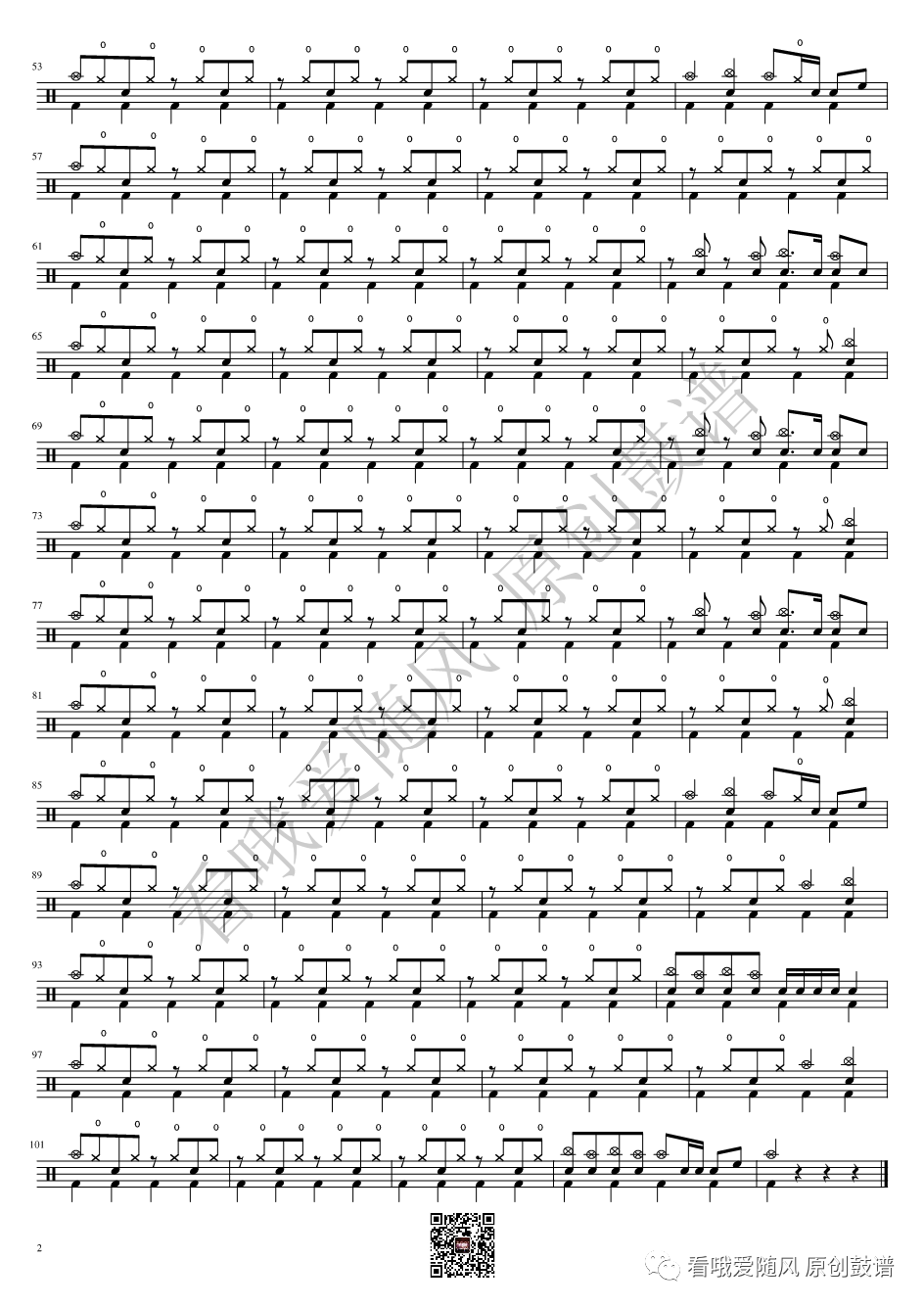 ONEOKROCK《IWasKing》架子鼓谱,看哦爱随风编配出品,共有2张高清图谱,由打鼓谱上传并分享。