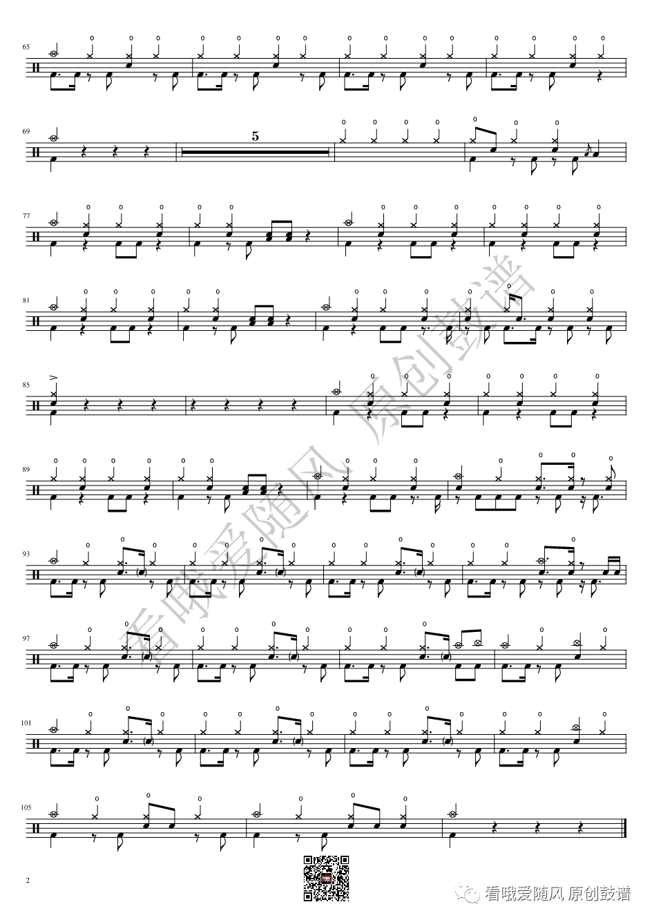 ONEOKROCK《IWasKing》架子鼓谱,看哦爱随风编配出品,共有2张高清图谱,由打鼓谱上传并分享。
