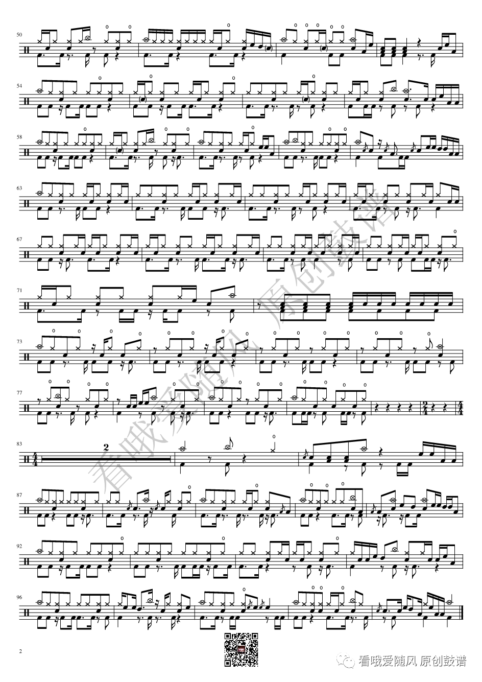 ONEOKROCK《IWasKing》架子鼓谱,看哦爱随风编配出品,共有2张高清图谱,由打鼓谱上传并分享。