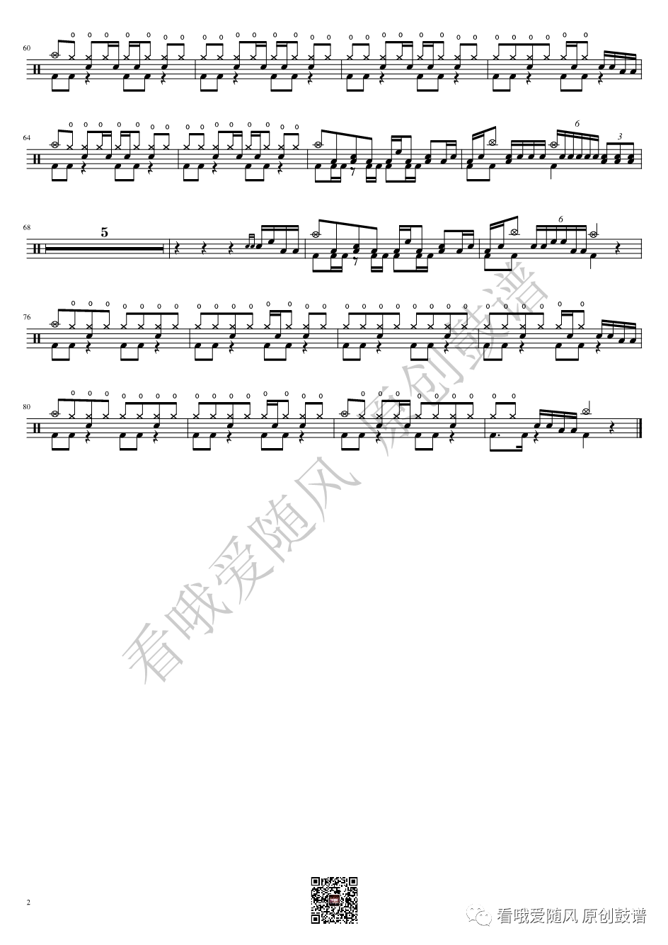 ONEOKROCK《IWasKing》架子鼓谱,看哦爱随风编配出品,共有2张高清图谱,由打鼓谱上传并分享。