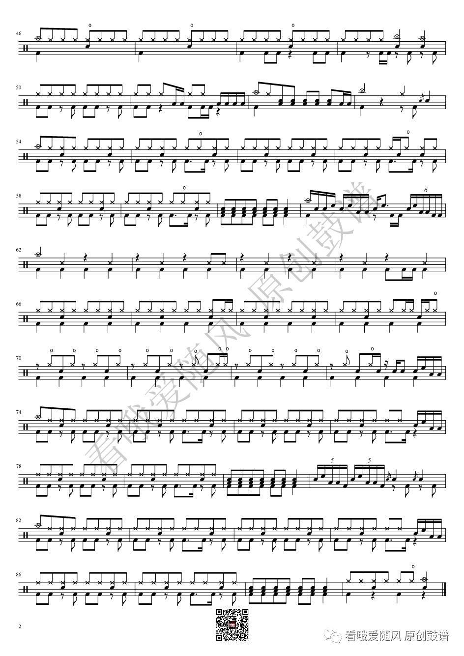 ONEOKROCK《エトセトラ》架子鼓谱,看哦爱随风编配出品,共有2张高清图谱,由打鼓谱上传并分享。