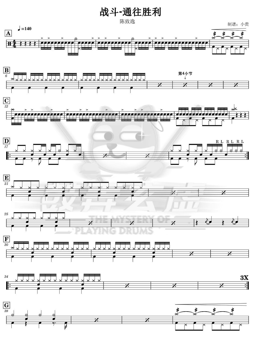 陈致逸《战斗-通往胜利》鼓谱 - 架子鼓谱 - 铠甲勇士超燃BGM