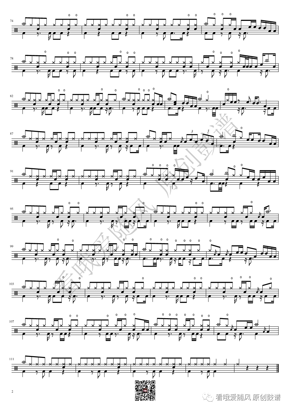 ONEOKROCK《IWasKing》架子鼓谱,看哦爱随风编配出品,共有2张高清图谱,由打鼓谱上传并分享。