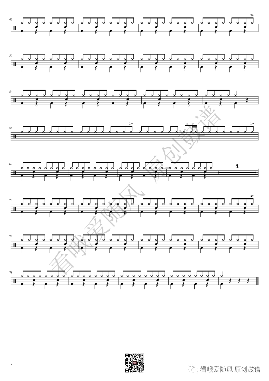 ONEOKROCK《IWasKing》架子鼓谱,看哦爱随风编配出品,共有2张高清图谱,由打鼓谱上传并分享。