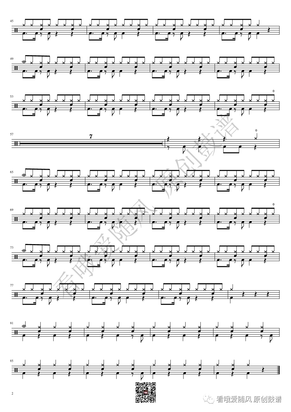 ONEOKROCK《未完成交響曲》架子鼓谱,看哦爱随风编配出品,共有1张高清图谱,由打鼓谱上传并分享。