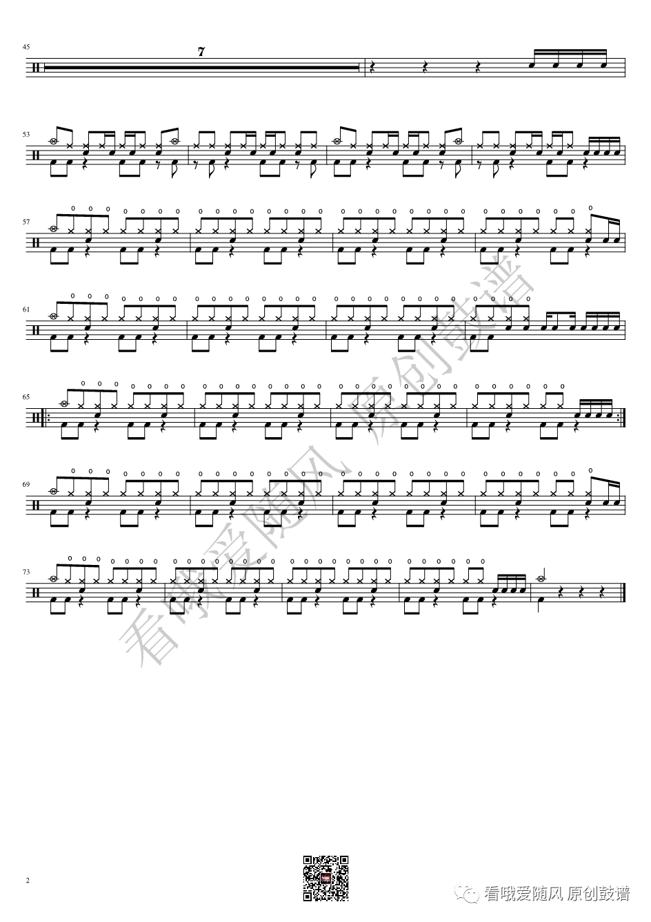 ONEOKROCK《IWasKing》架子鼓谱,看哦爱随风编配出品,共有2张高清图谱,由打鼓谱上传并分享。