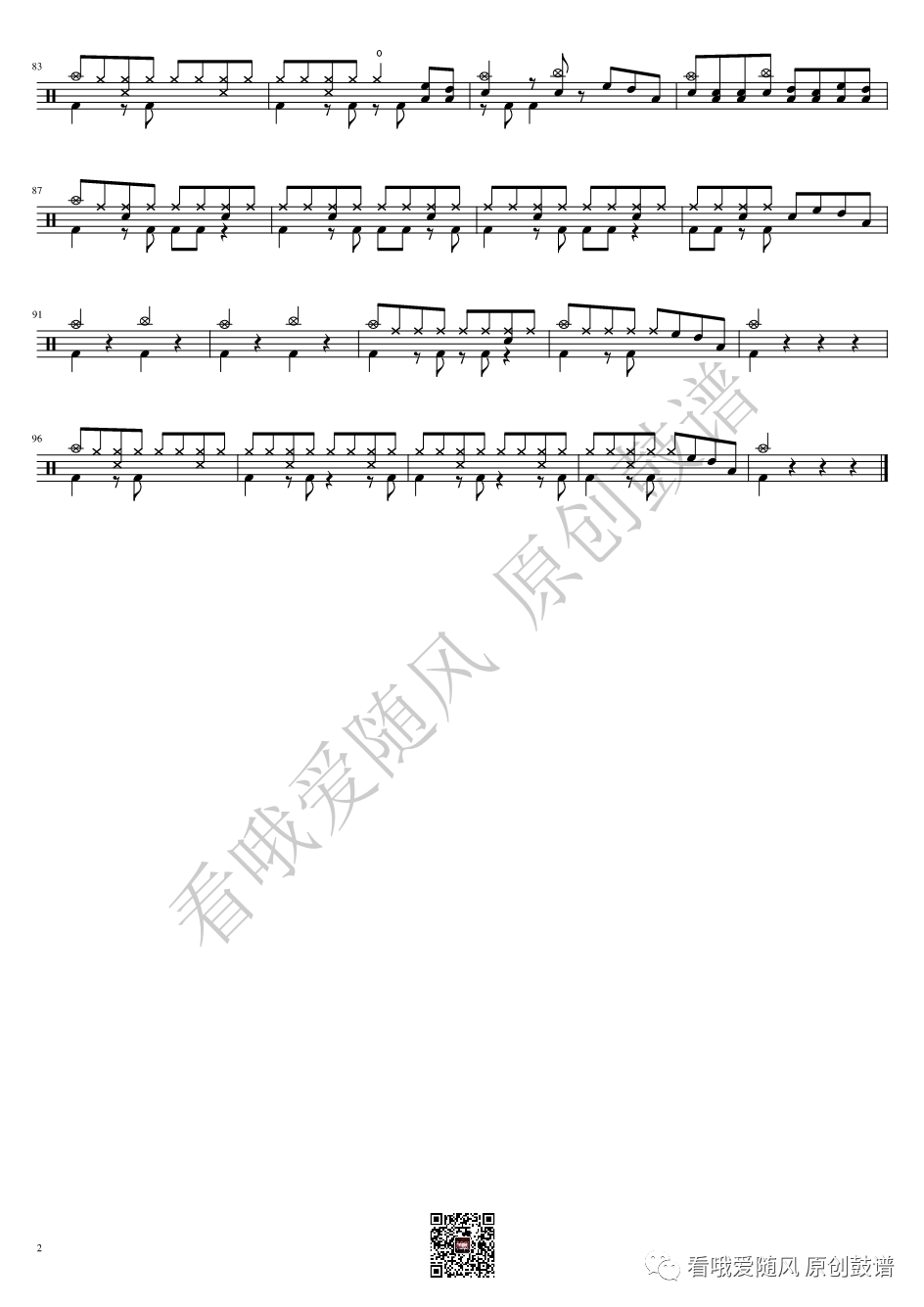 ONEOKROCK《IWasKing》架子鼓谱,看哦爱随风编配出品,共有2张高清图谱,由打鼓谱上传并分享。