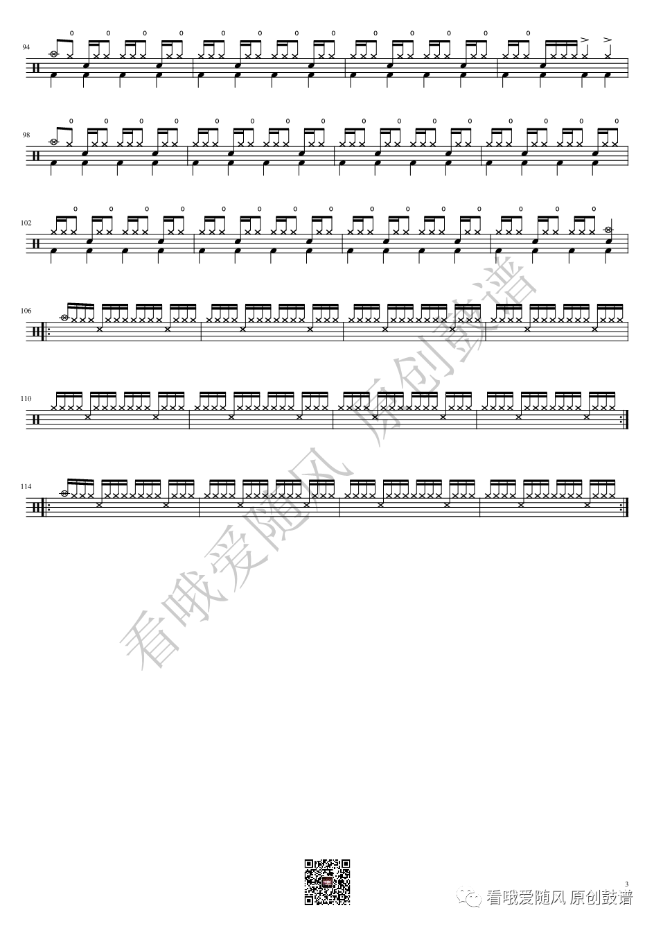 如龙维新OP《ClockStrikes》架子鼓谱,看哦爱随风编配出品,共有1张高清图谱,由打鼓谱上传并分享。