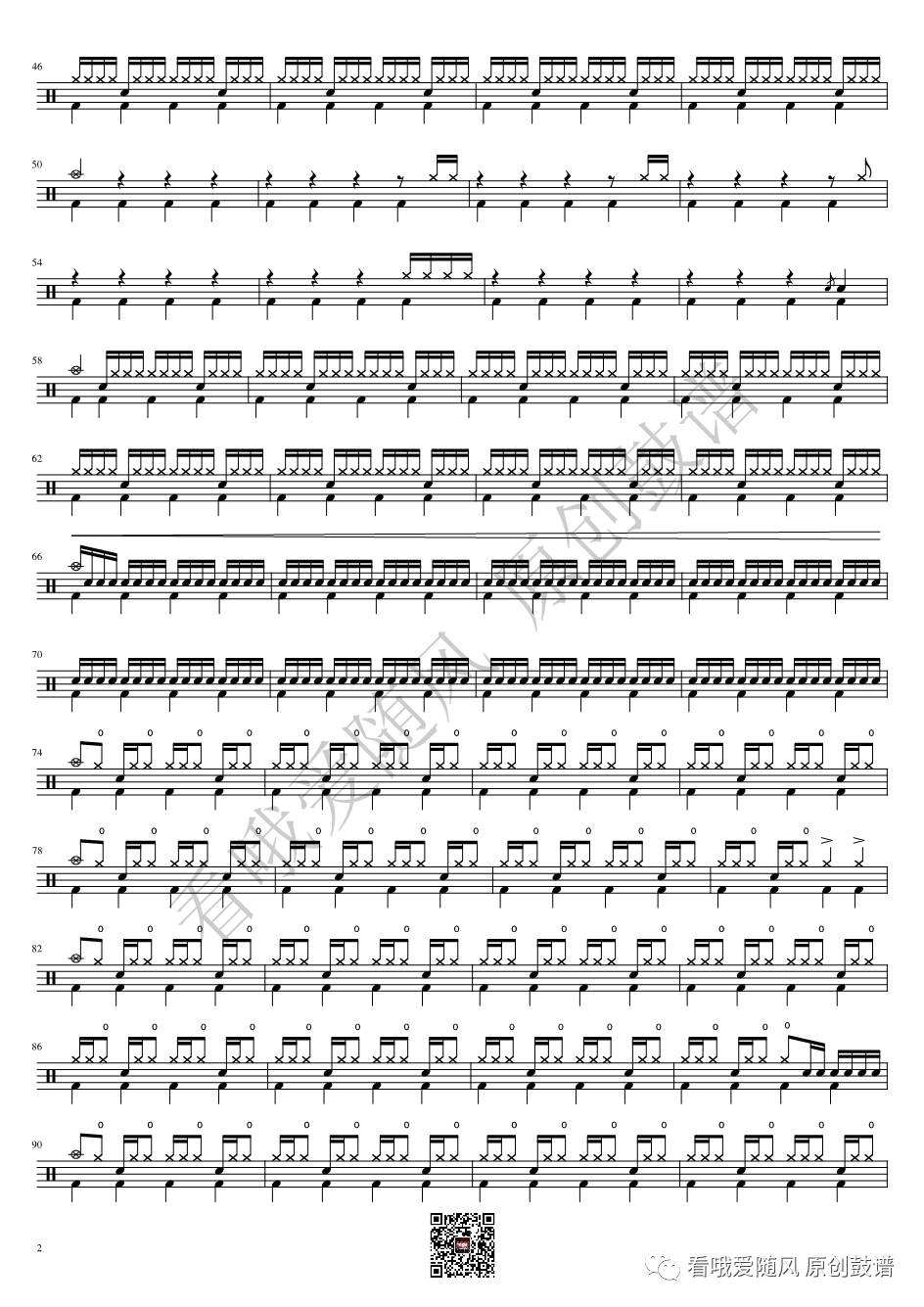 ONEOKROCK《IWasKing》架子鼓谱,看哦爱随风编配出品,共有2张高清图谱,由打鼓谱上传并分享。