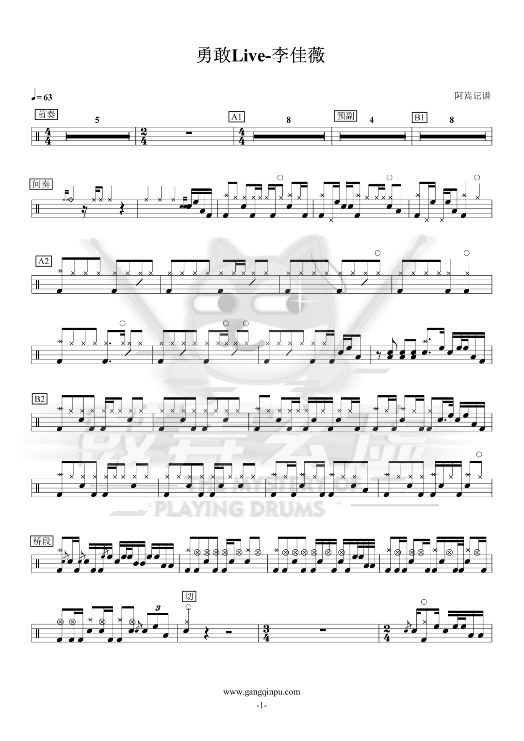 如龙维新OP《ClockStrikes》架子鼓谱,看哦爱随风编配出品,共有1张高清图谱,由打鼓谱上传并分享。