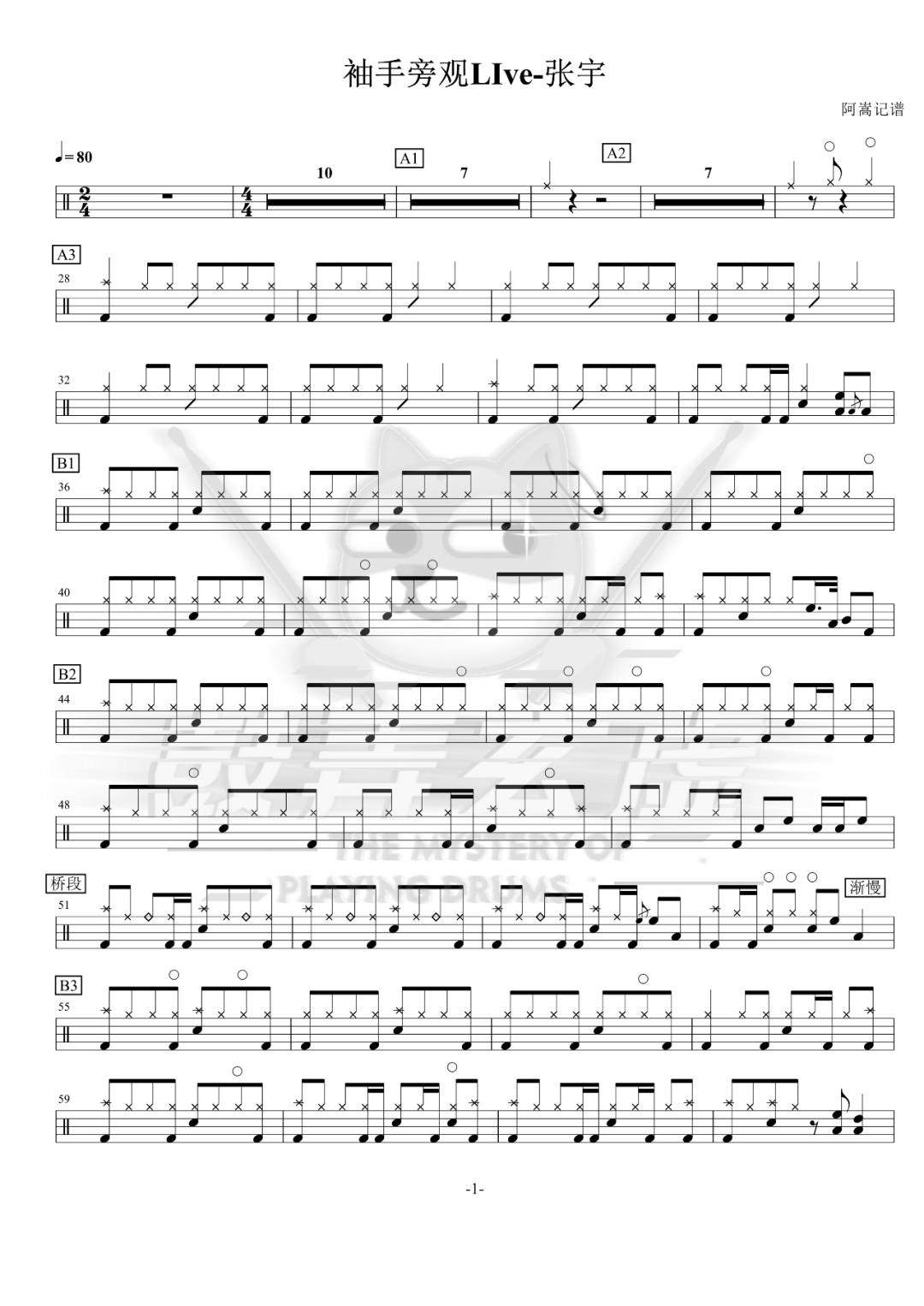 悶餅MOONBAND《DearMary》架子鼓谱,看哦爱随风编配出品,共有2张高清图谱,由打鼓谱上传并分享。