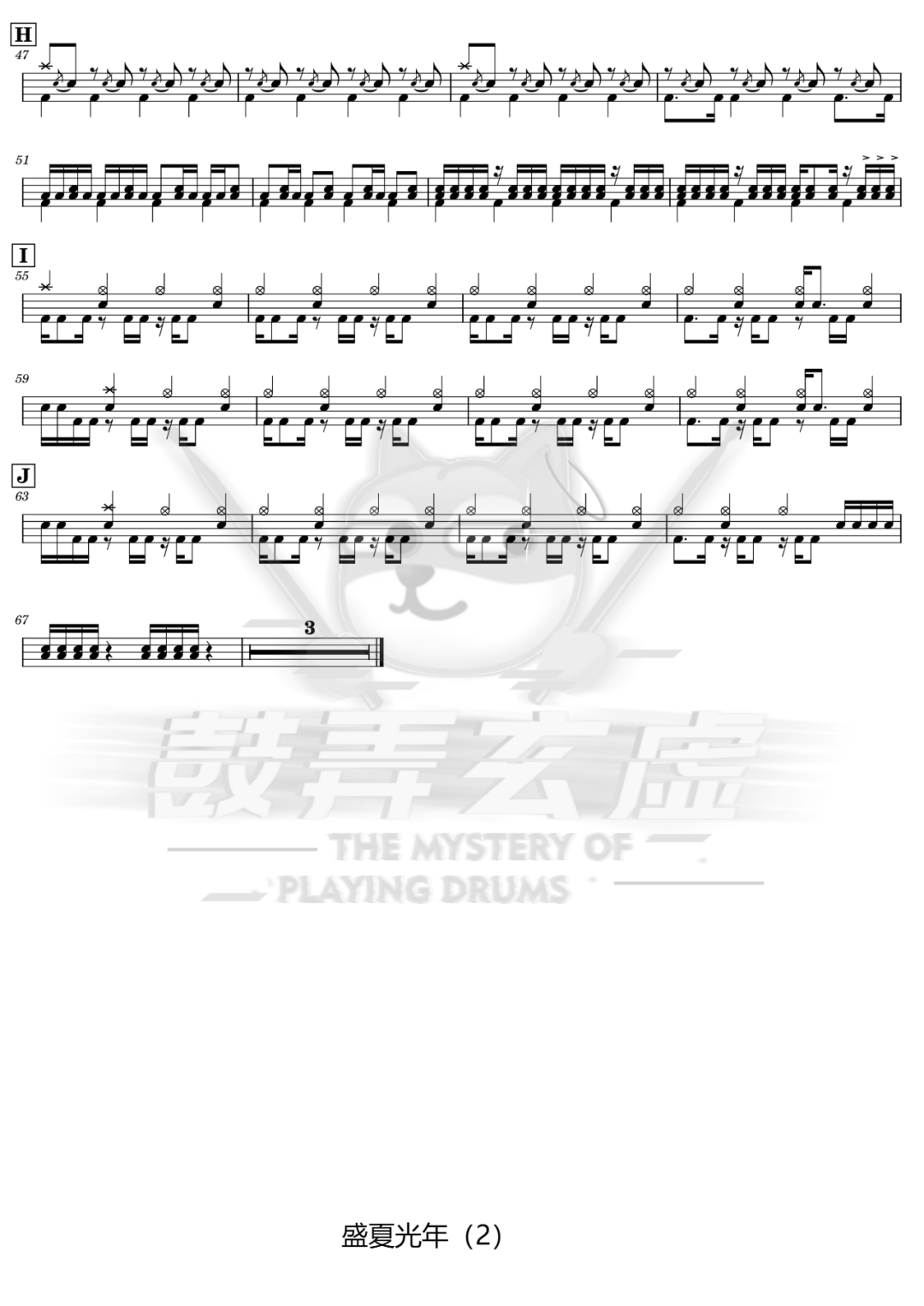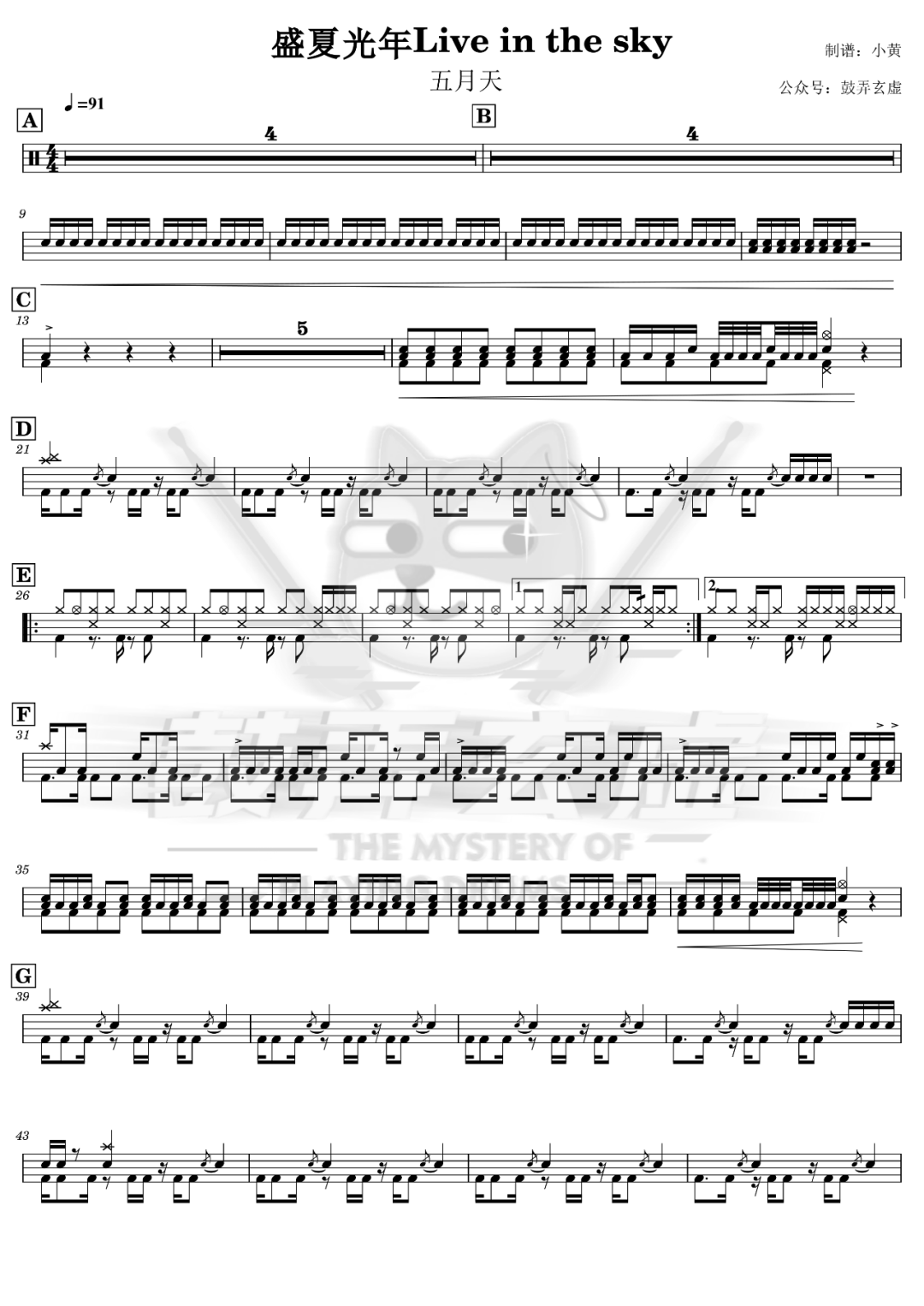 五月天《盛夏光年》架子鼓谱,鼓弄玄虚编配出品,共有2张高清图谱,由打鼓谱上传并分享。鼓谱:《盛夏光年Live in the sky》-五月天
