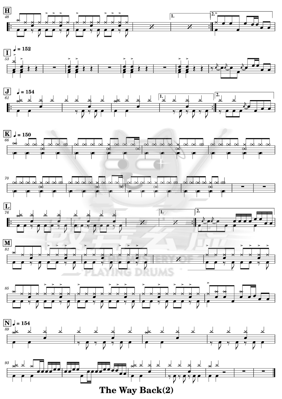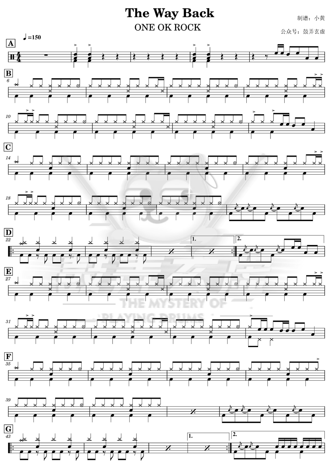 ONE OK ROCK《The Way Back》架子鼓谱,鼓弄玄虚编配出品,共有2张高清图谱,由打鼓谱上传并分享。鼓谱:《The Way Back》- ONE OK ROCK