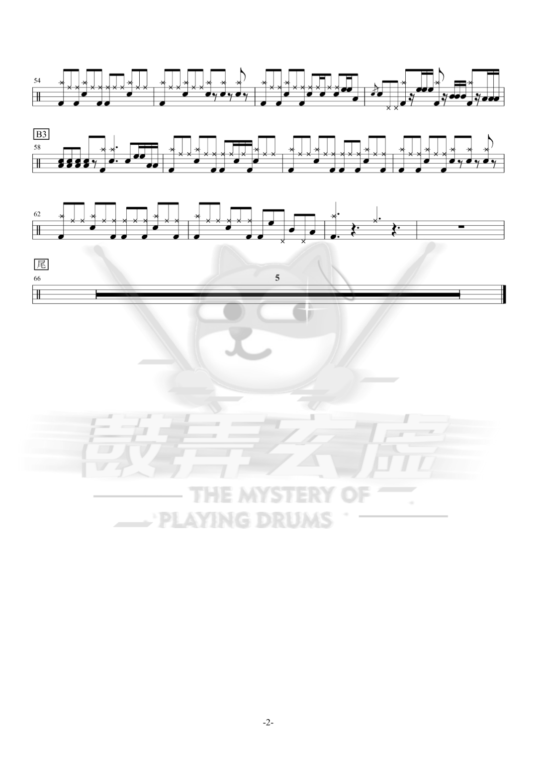 ONEOKROCK《IWasKing》架子鼓谱,看哦爱随风编配出品,共有2张高清图谱,由打鼓谱上传并分享。
