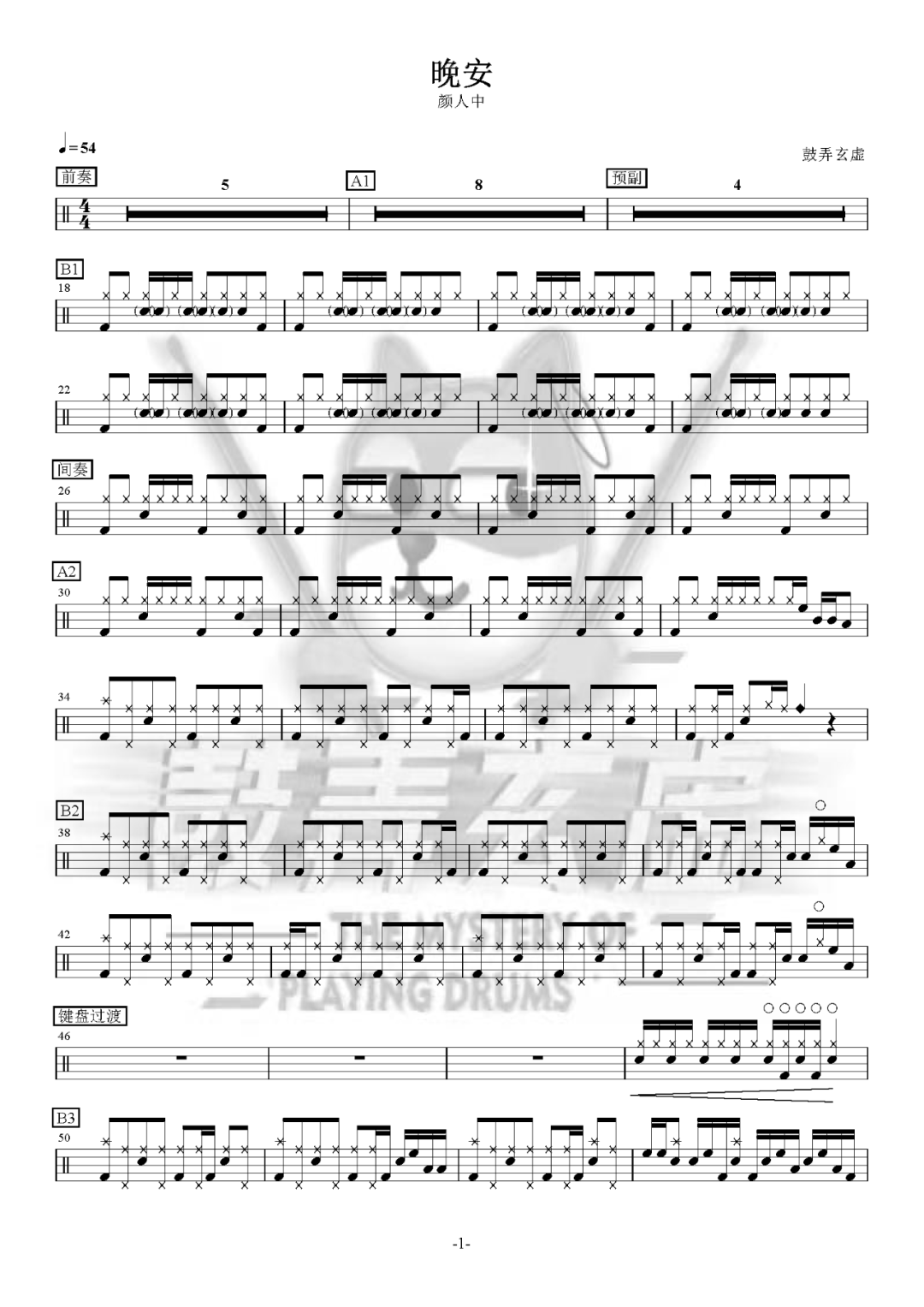 ONEOKROCK《完全感觉Dreamer》架子鼓谱,看哦爱随风编配出品,共有4张高清图谱,由打鼓谱上传并分享。