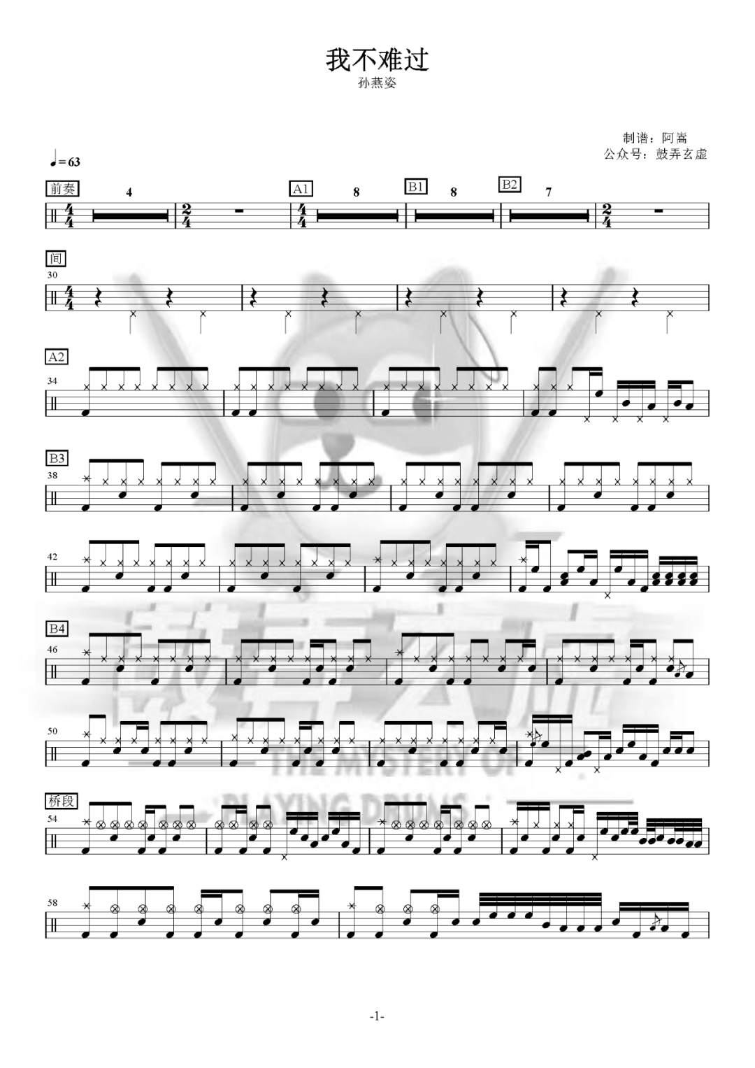 MYFIRSTSTORY《MissingYou》架子鼓谱,看哦爱随风编配出品,共有1张高清图谱,由打鼓谱上传并分享。