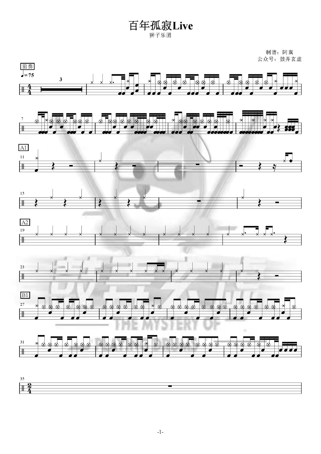 ONEOKROCK《未完成交響曲》架子鼓谱,看哦爱随风编配出品,共有1张高清图谱,由打鼓谱上传并分享。