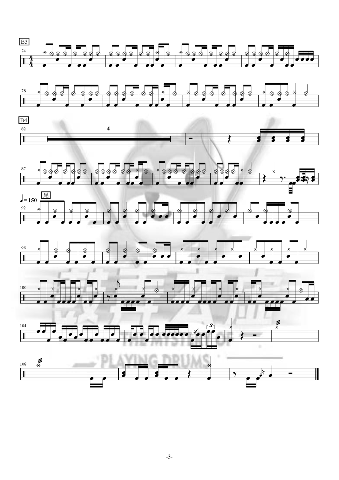 ONEOKROCK《Re:make》架子鼓谱,看哦爱随风编配出品,共有3张高清图谱,由打鼓谱上传并分享。