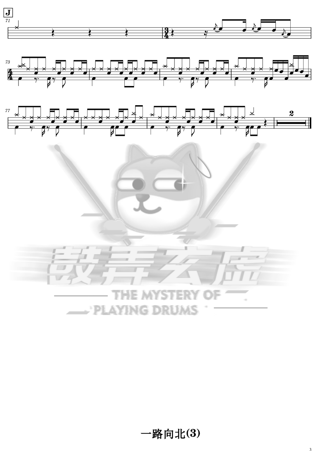 周杰伦《一路向北》架子鼓谱高还原,鼓弄玄虚编配出品,共有3张高清图谱,由打鼓谱上传并分享。鼓谱:《一路向北》-周杰伦(高还原)