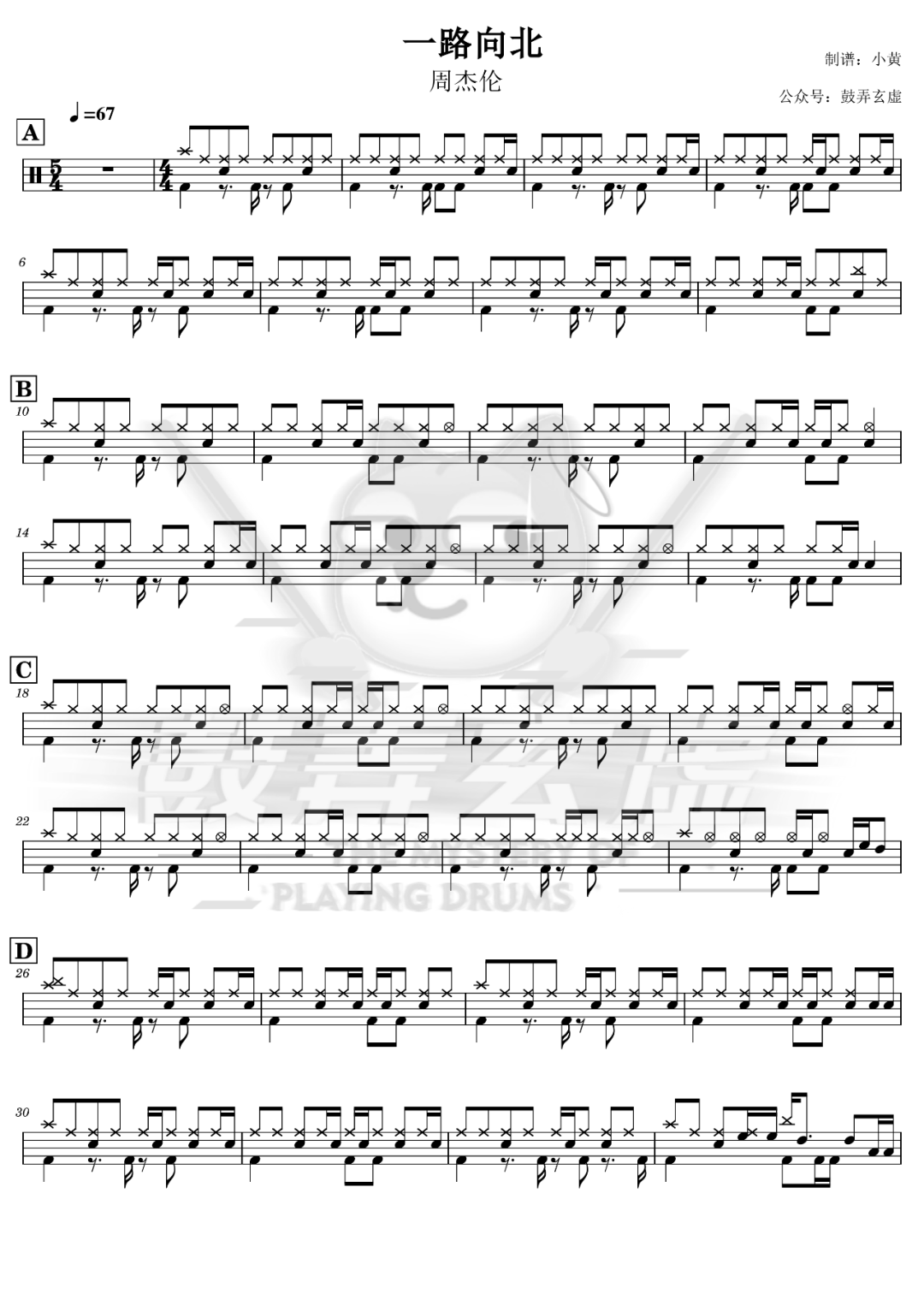 周杰伦《一路向北》鼓谱 - 架子鼓谱 - 高还原