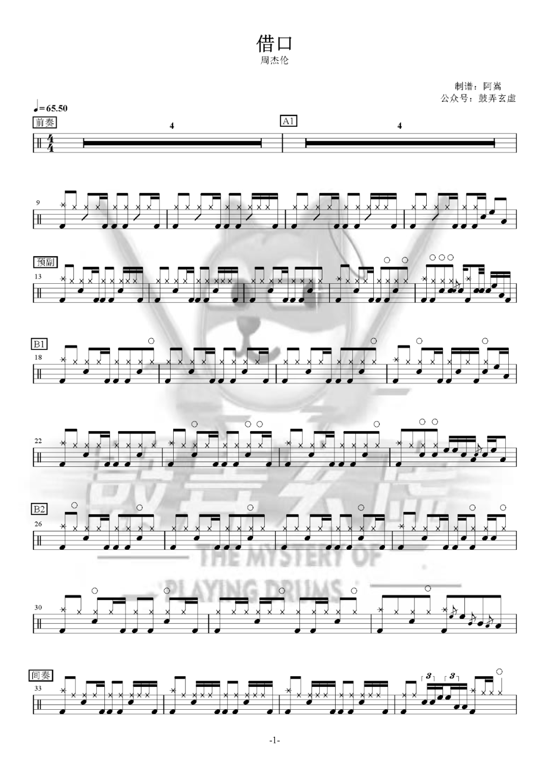 周杰伦《算什么男人》鼓谱 - 架子鼓谱