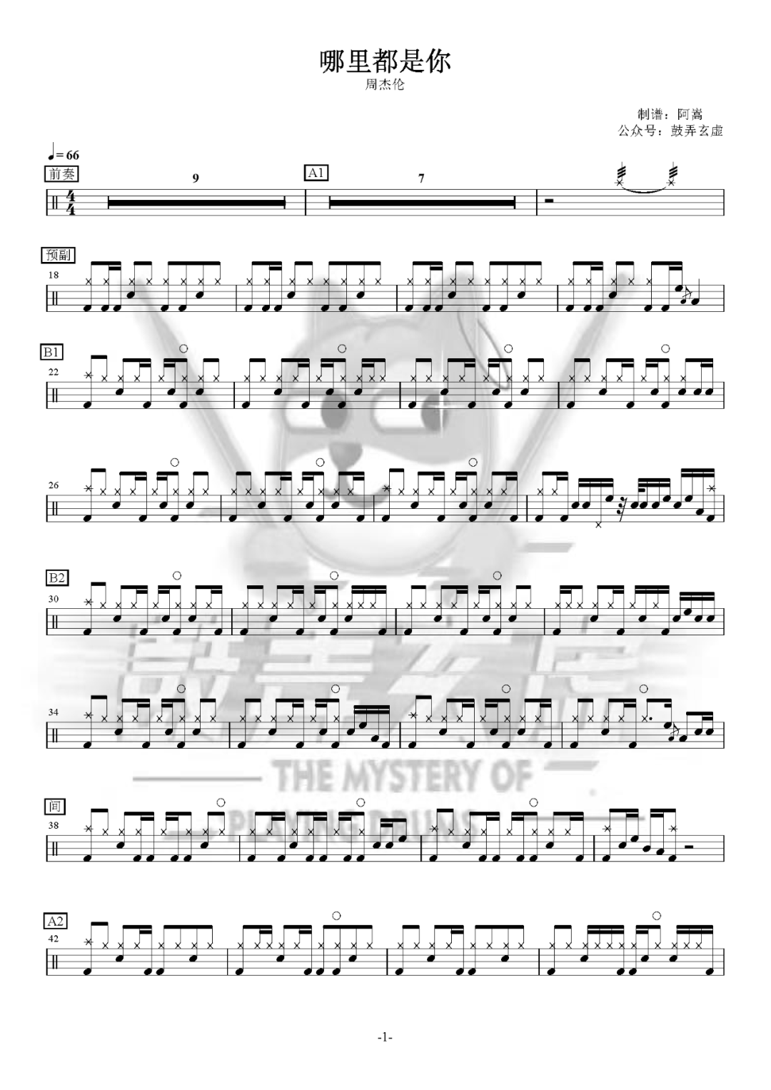 MYFIRSTSTORY《MissingYou》架子鼓谱,看哦爱随风编配出品,共有1张高清图谱,由打鼓谱上传并分享。
