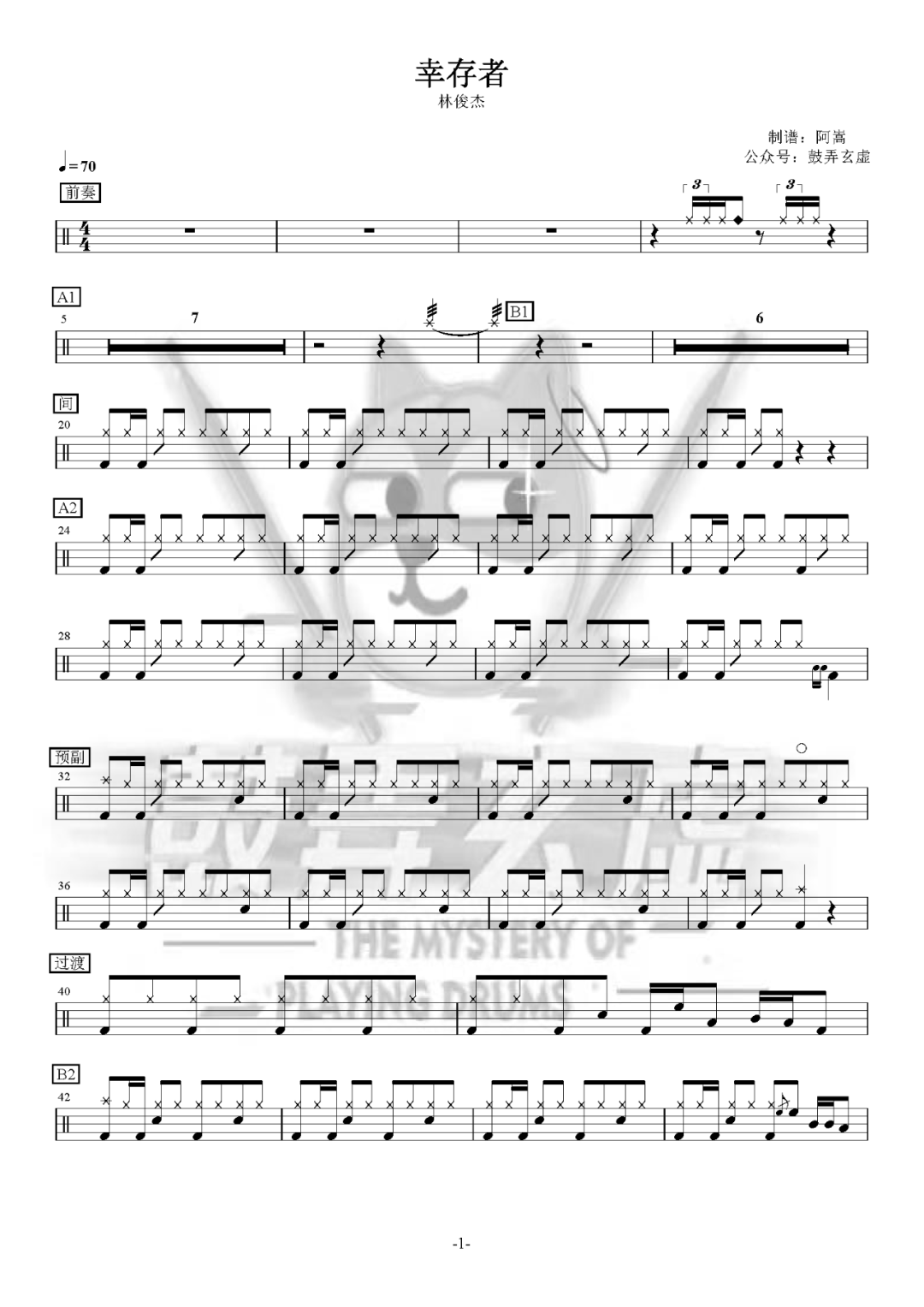 林俊杰《暂时的记号》鼓谱 - 架子鼓谱