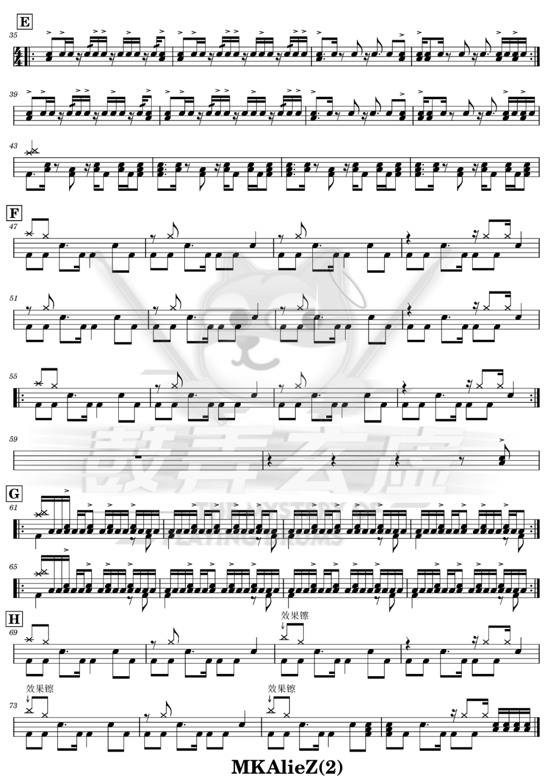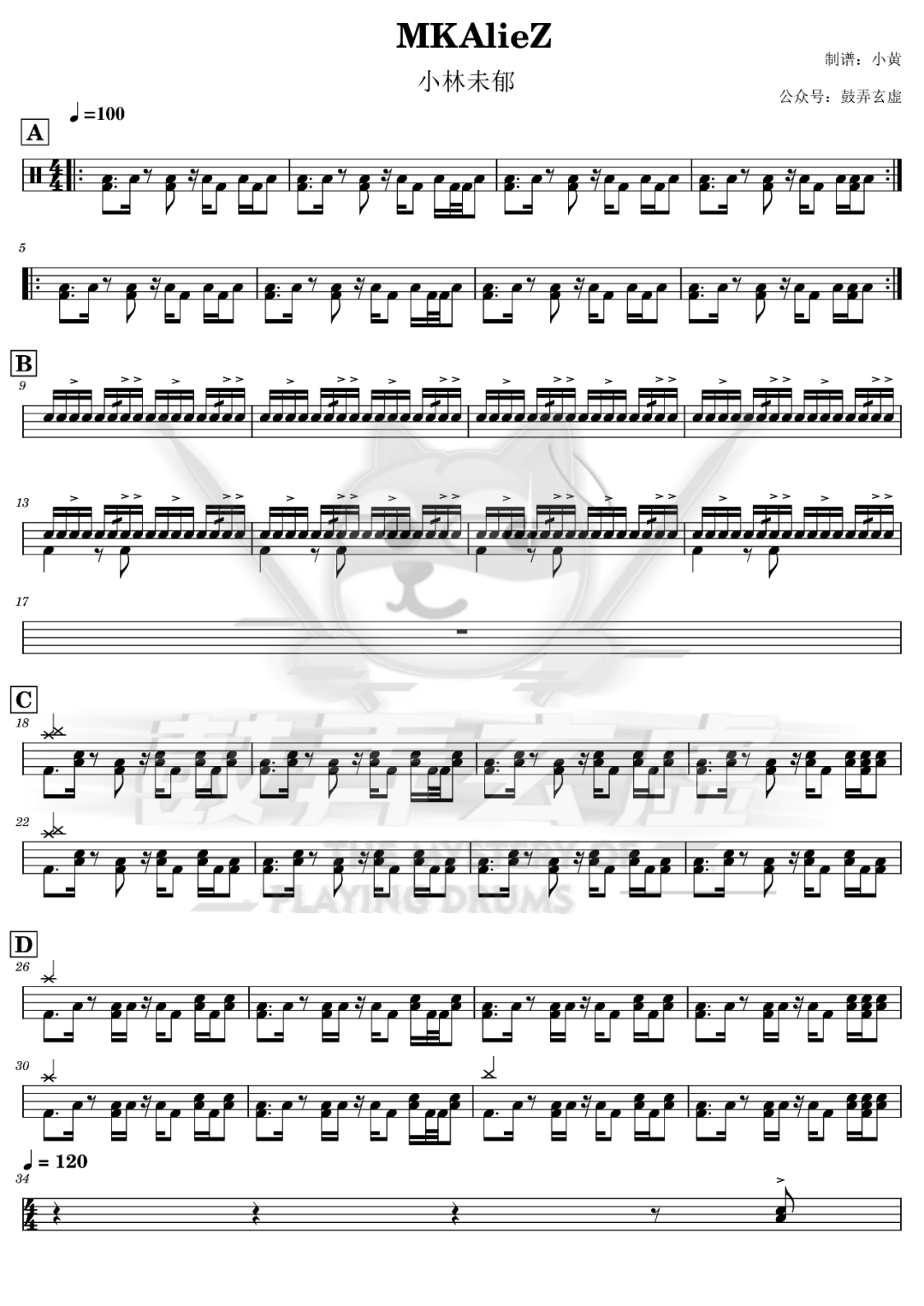 小林未郁《MKAlieZ》架子鼓谱超燃,鼓弄玄虚编配出品,共有2张高清图谱,由打鼓谱上传并分享。鼓谱:《MKAlieZ》-小林未郁 (超燃!!!)