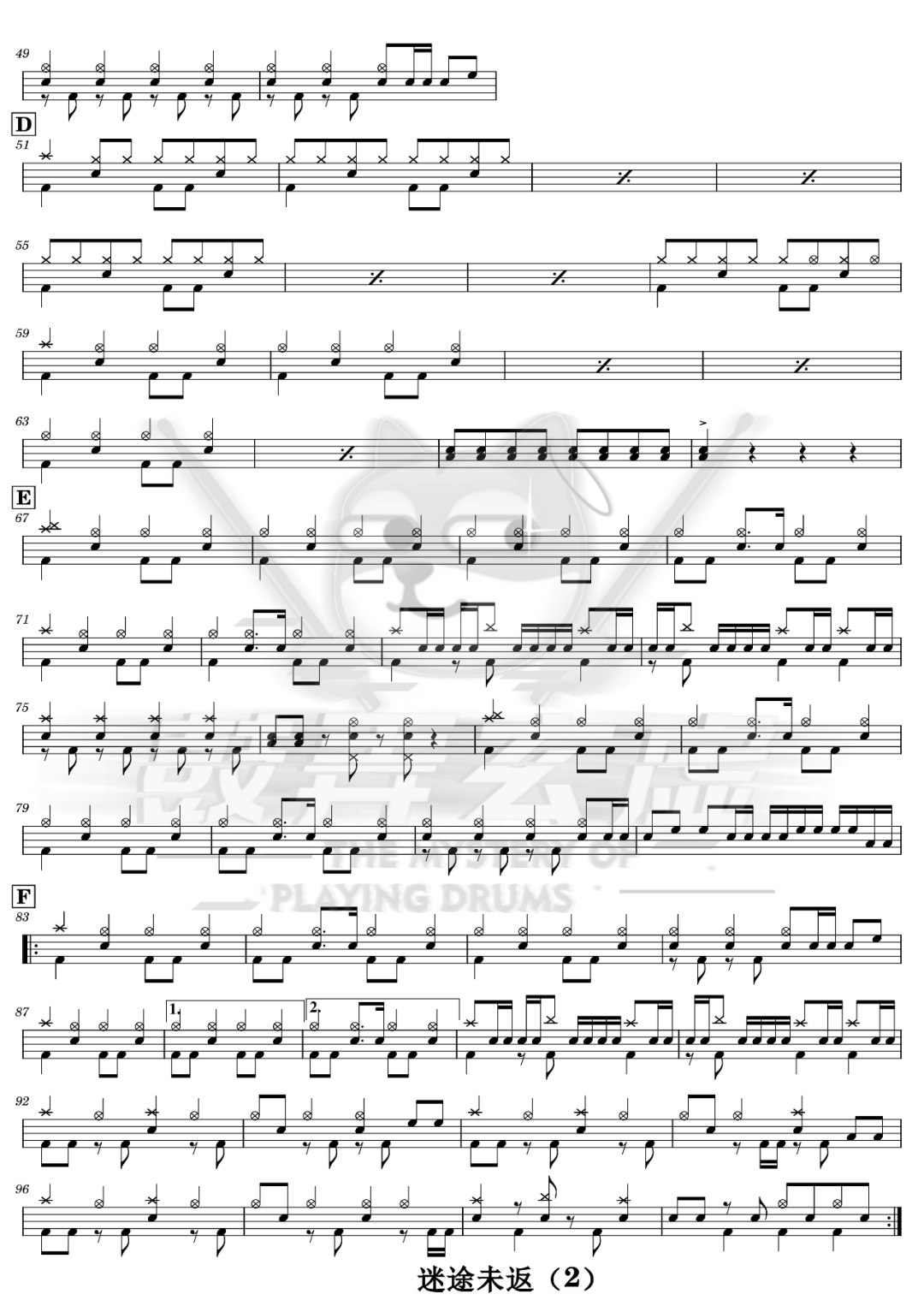 ONEOKROCK《未完成交響曲》架子鼓谱,看哦爱随风编配出品,共有1张高清图谱,由打鼓谱上传并分享。