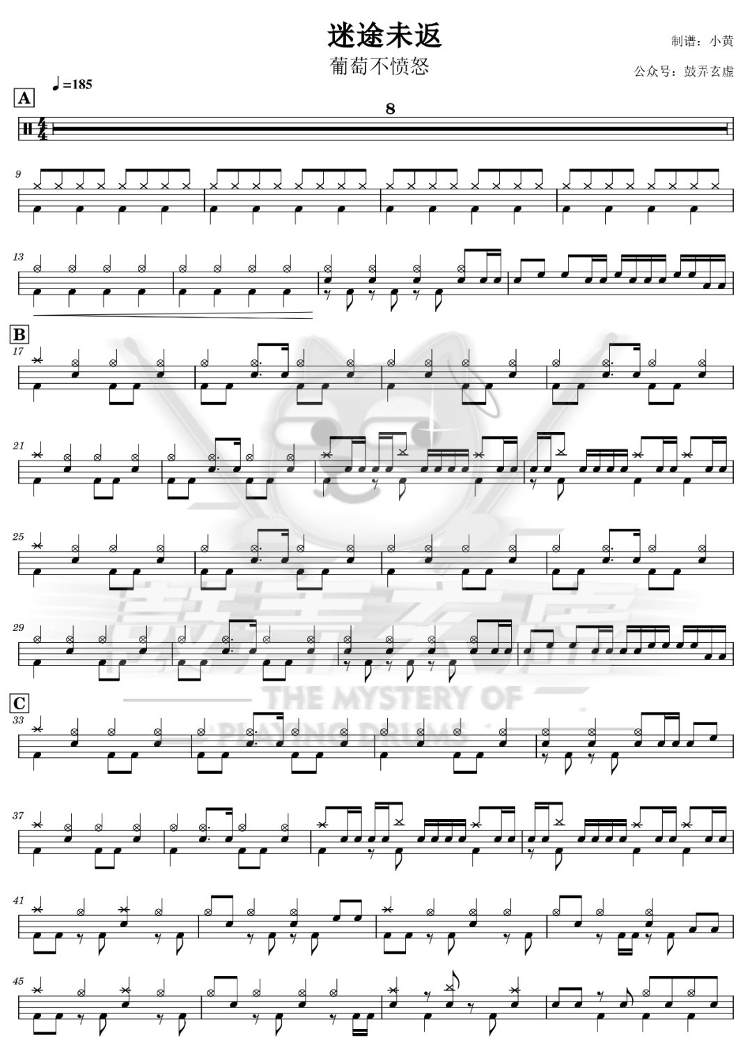 如龙维新OP《ClockStrikes》架子鼓谱,看哦爱随风编配出品,共有1张高清图谱,由打鼓谱上传并分享。