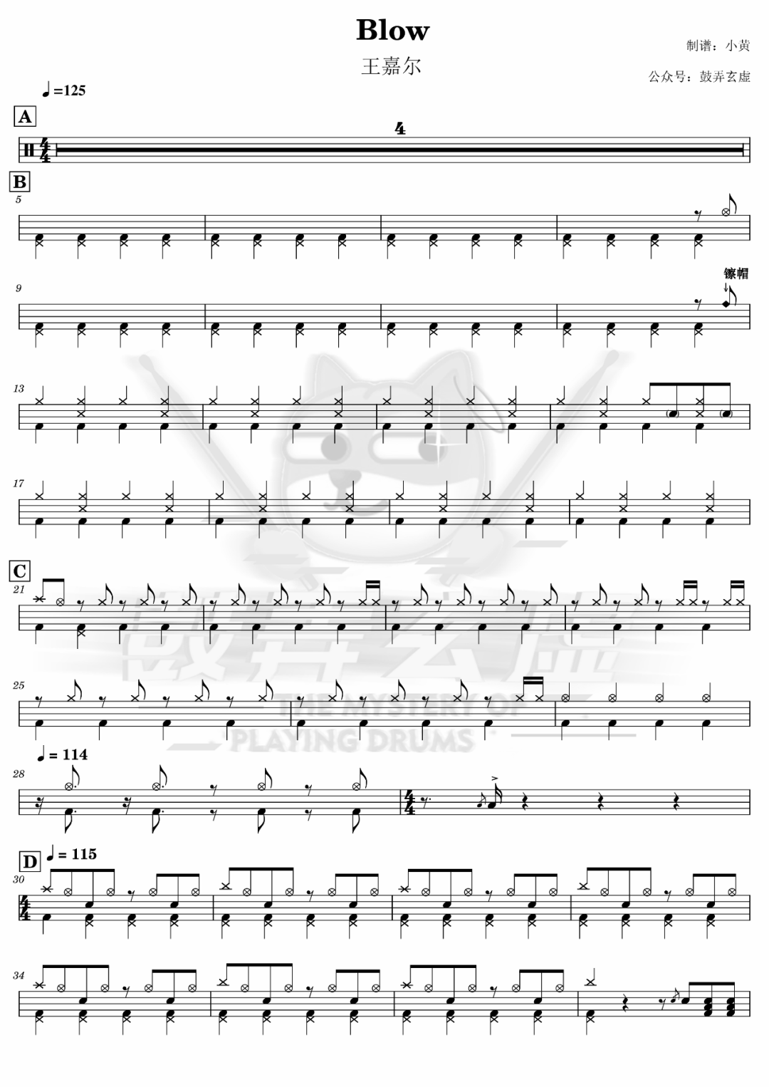 如龙维新OP《ClockStrikes》架子鼓谱,看哦爱随风编配出品,共有1张高清图谱,由打鼓谱上传并分享。