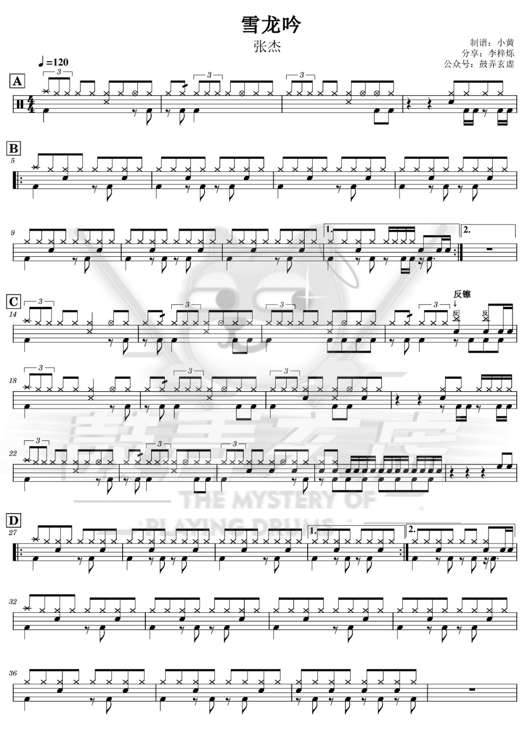 如龙维新OP《ClockStrikes》架子鼓谱,看哦爱随风编配出品,共有1张高清图谱,由打鼓谱上传并分享。