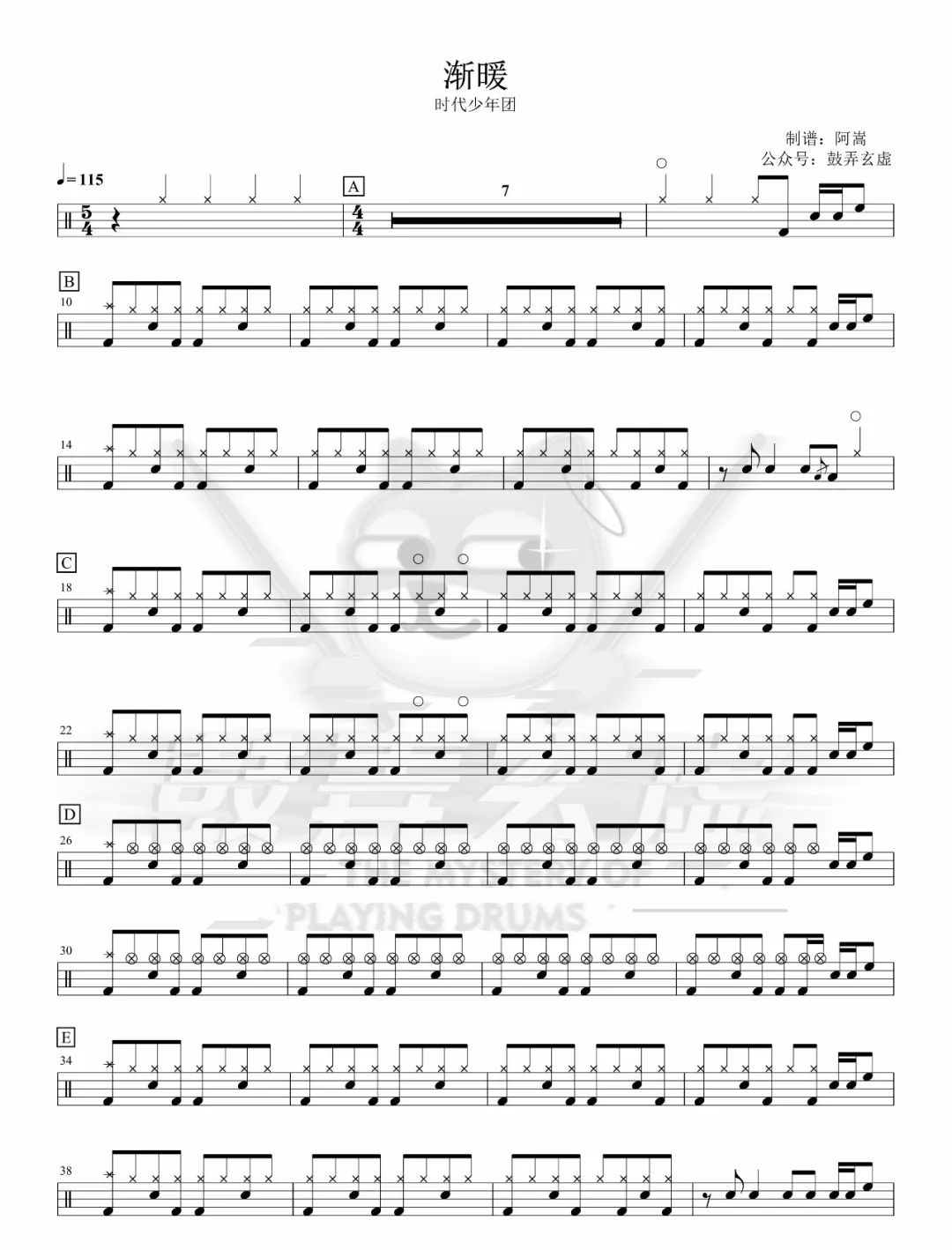 ONEOKROCK《TheBeginning》架子鼓谱,看哦爱随风编配出品,共有3张高清图谱,由打鼓谱上传并分享。