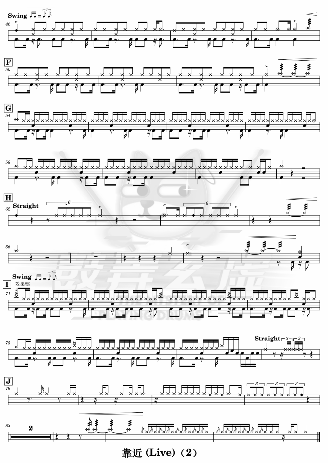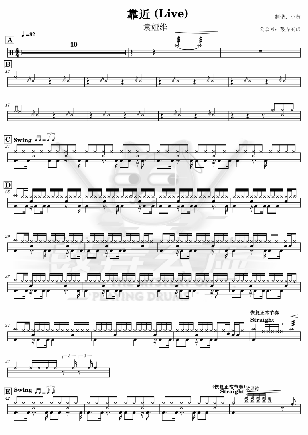 袁娅维《靠近》架子鼓谱为歌而赞live,鼓弄玄虚编配出品,共有2张高清图谱,由打鼓谱上传并分享。鼓谱:《靠近 》-袁娅维(为歌而赞live)