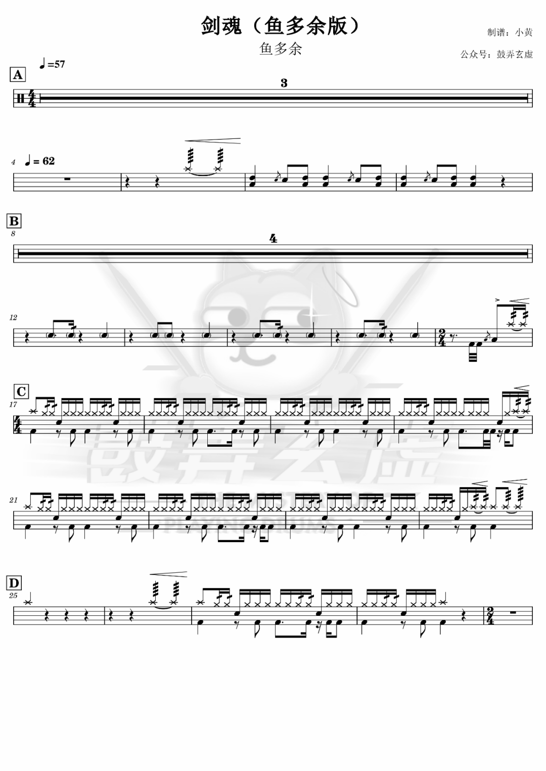 如龙维新OP《ClockStrikes》架子鼓谱,看哦爱随风编配出品,共有1张高清图谱,由打鼓谱上传并分享。