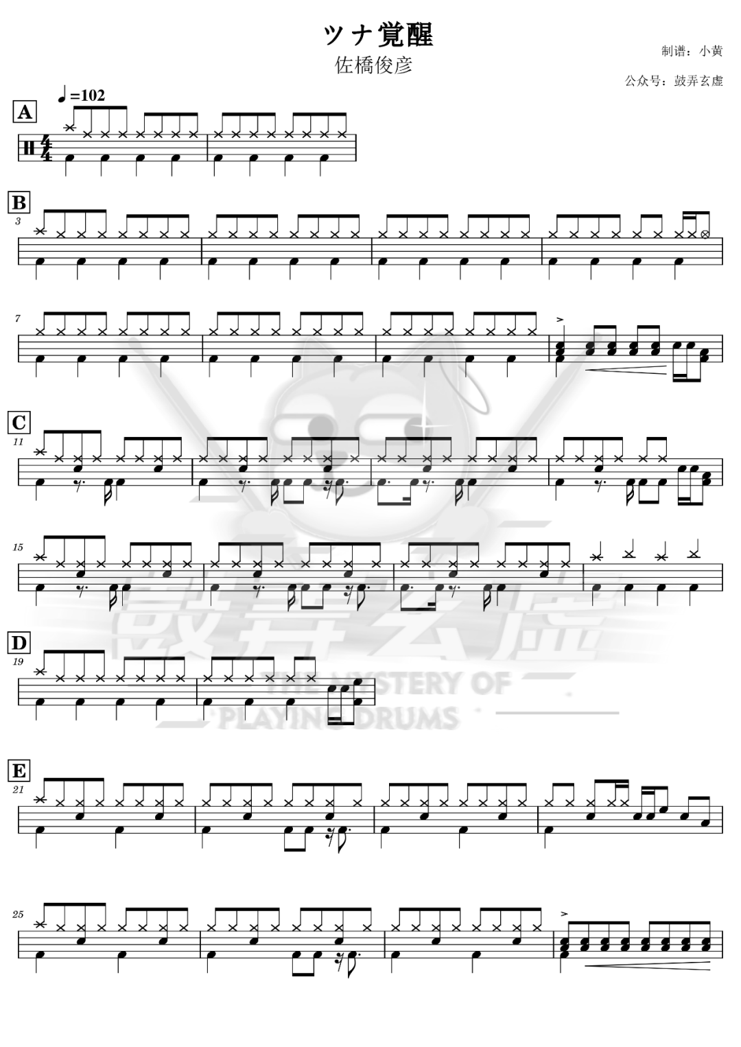 佐橋俊彦《ツナ覚醒》鼓谱 - 架子鼓谱