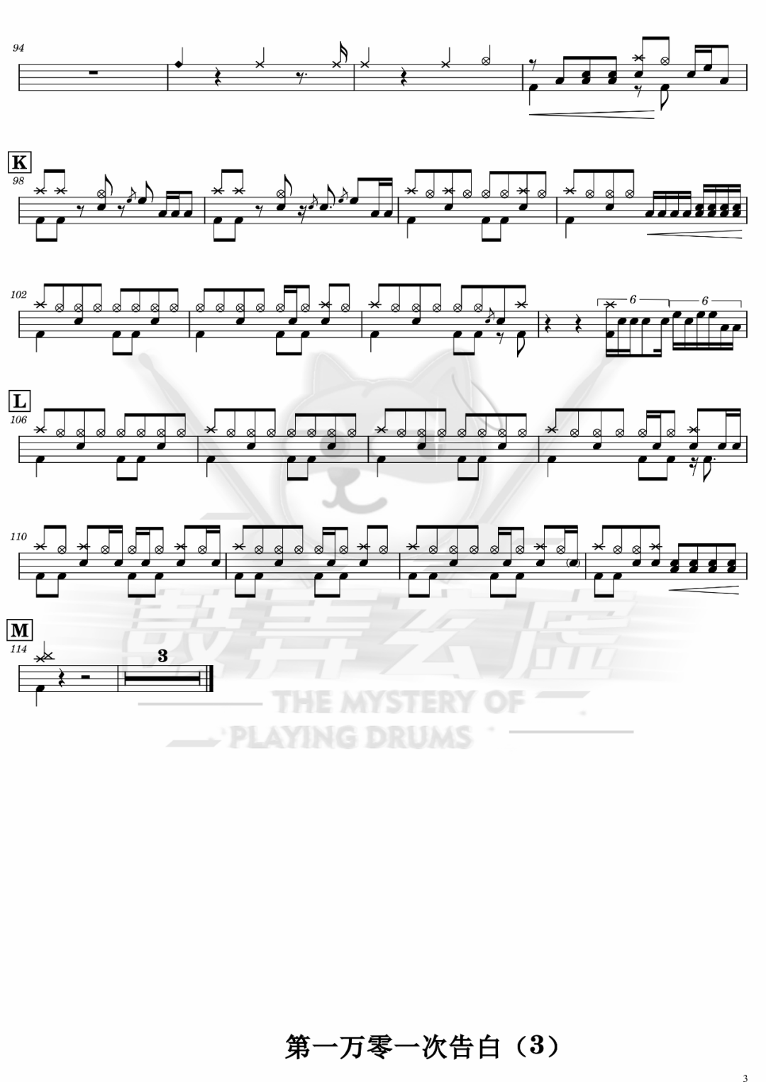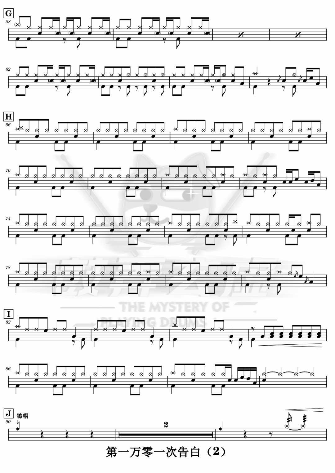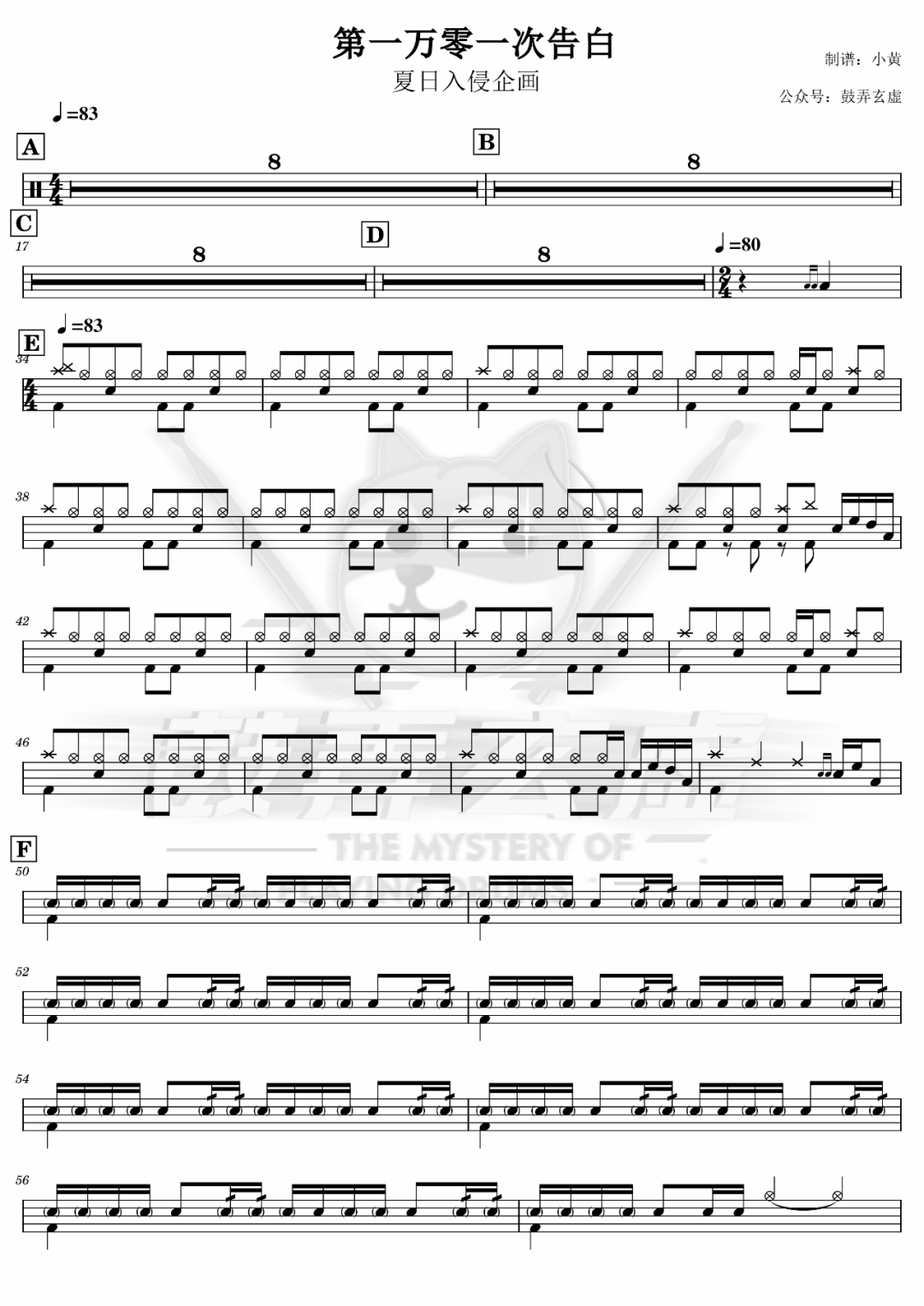 夏日入侵企画《第一万零一次告白》架子鼓谱,鼓弄玄虚编配出品,共有3张高清图谱,由打鼓谱上传并分享。鼓谱:《第一万零一次告白》-夏日入侵企画