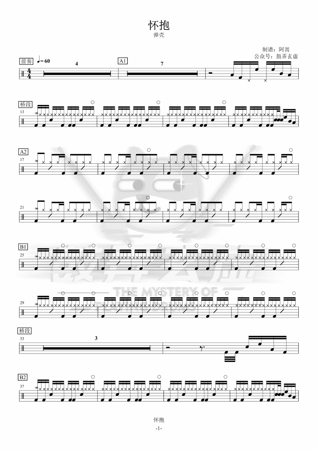MYFIRSTSTORY《MissingYou》架子鼓谱,看哦爱随风编配出品,共有1张高清图谱,由打鼓谱上传并分享。
