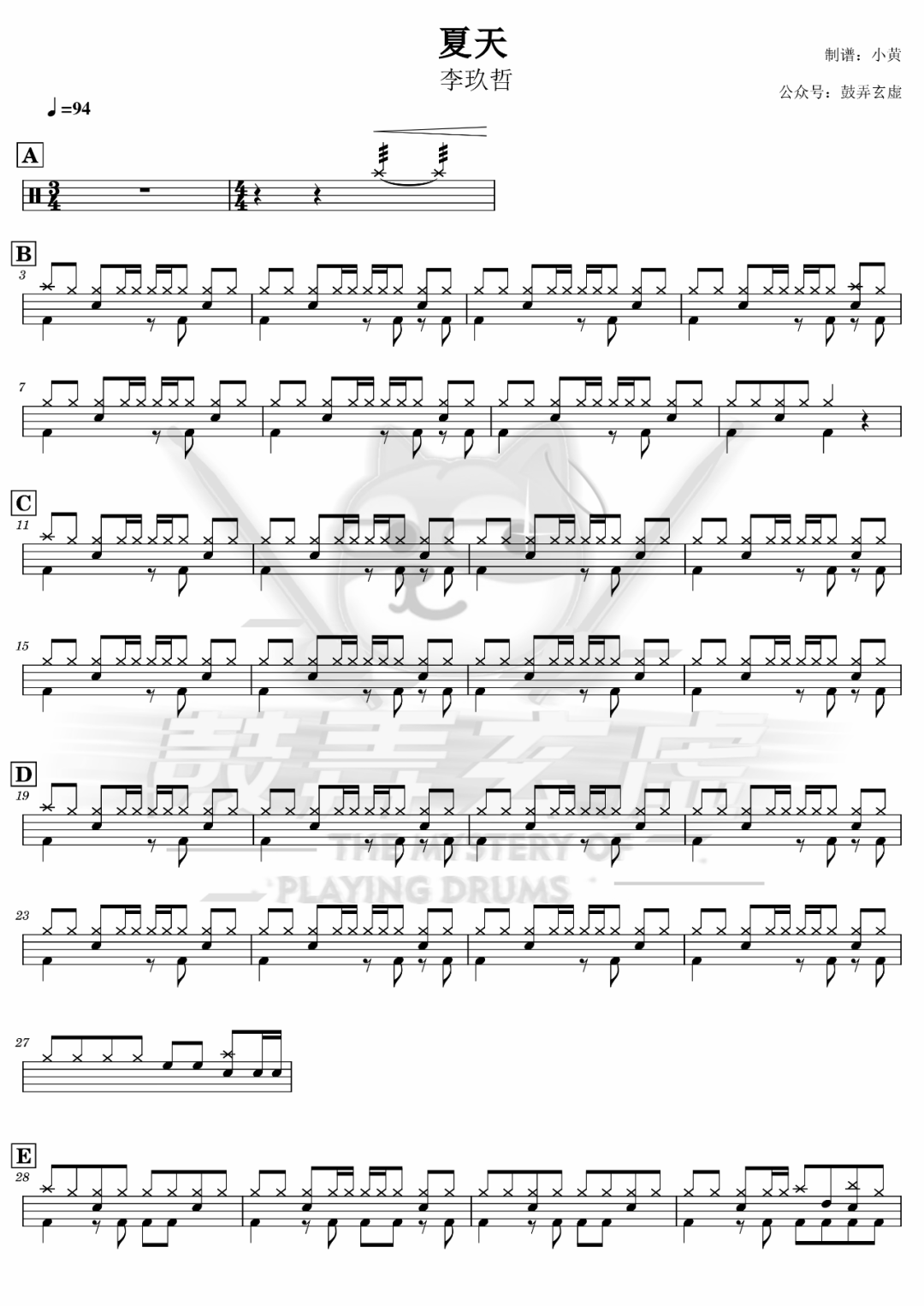 ONEOKROCK《完全感觉Dreamer》架子鼓谱,看哦爱随风编配出品,共有4张高清图谱,由打鼓谱上传并分享。