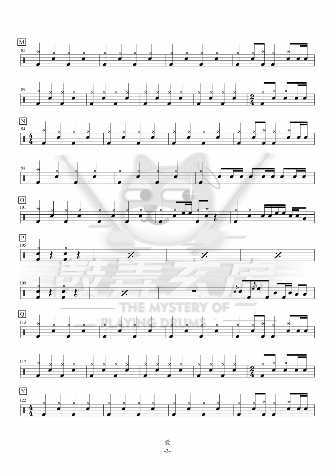 ONEOKROCK《TheBeginning》架子鼓谱,看哦爱随风编配出品,共有3张高清图谱,由打鼓谱上传并分享。