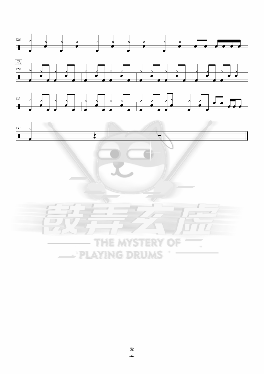 MYFIRSTSTORY《MissingYou》架子鼓谱,看哦爱随风编配出品,共有1张高清图谱,由打鼓谱上传并分享。