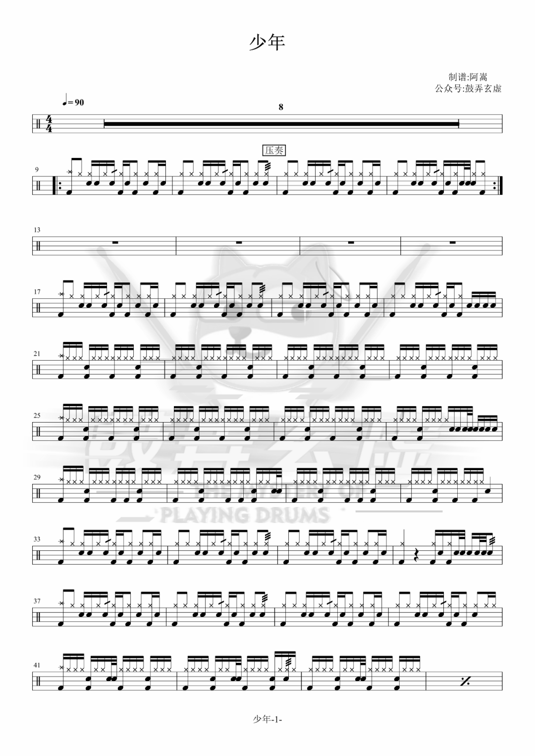 MYFIRSTSTORY《MissingYou》架子鼓谱,看哦爱随风编配出品,共有1张高清图谱,由打鼓谱上传并分享。