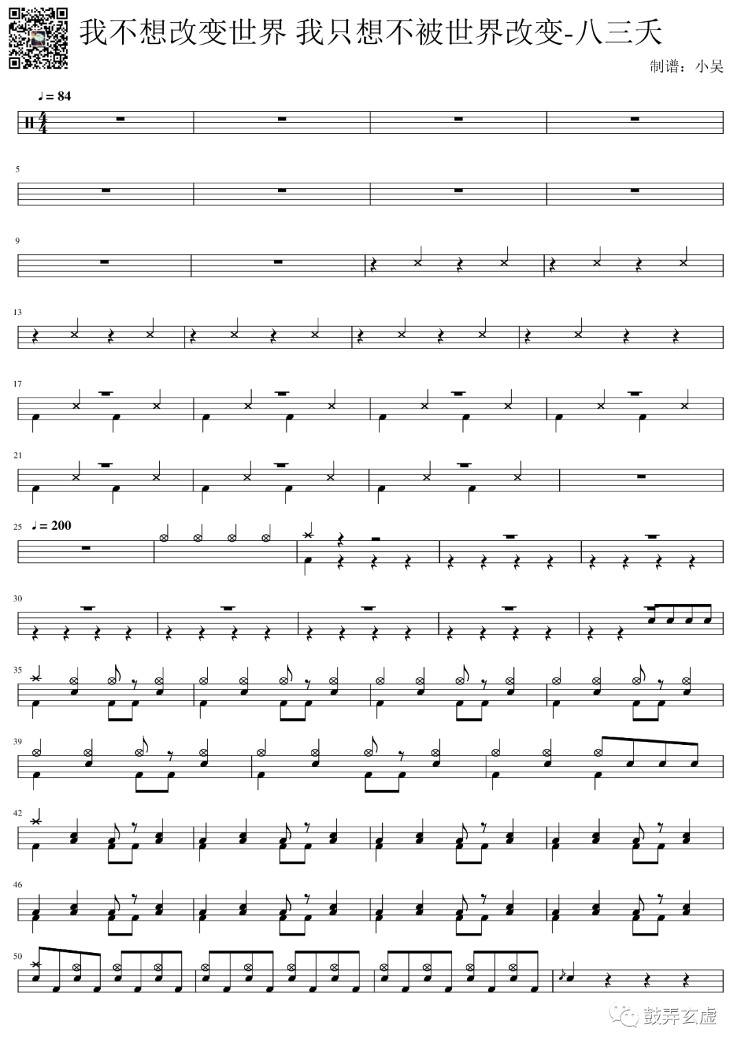 《我不想改变世界 我只不想被世界改变》架子鼓谱,鼓弄玄虚编配出品,共有2张高清图谱,由打鼓谱上传并分享。《我不想改变世界 我只不想被世界改变》鼓谱_架子鼓谱