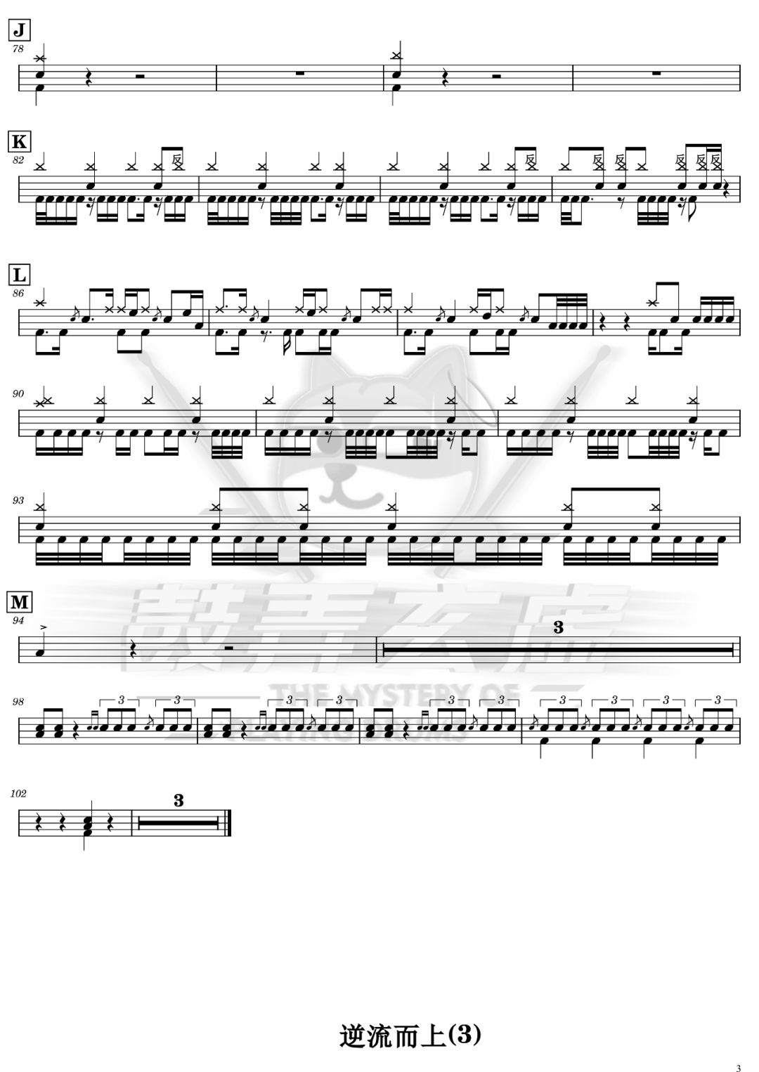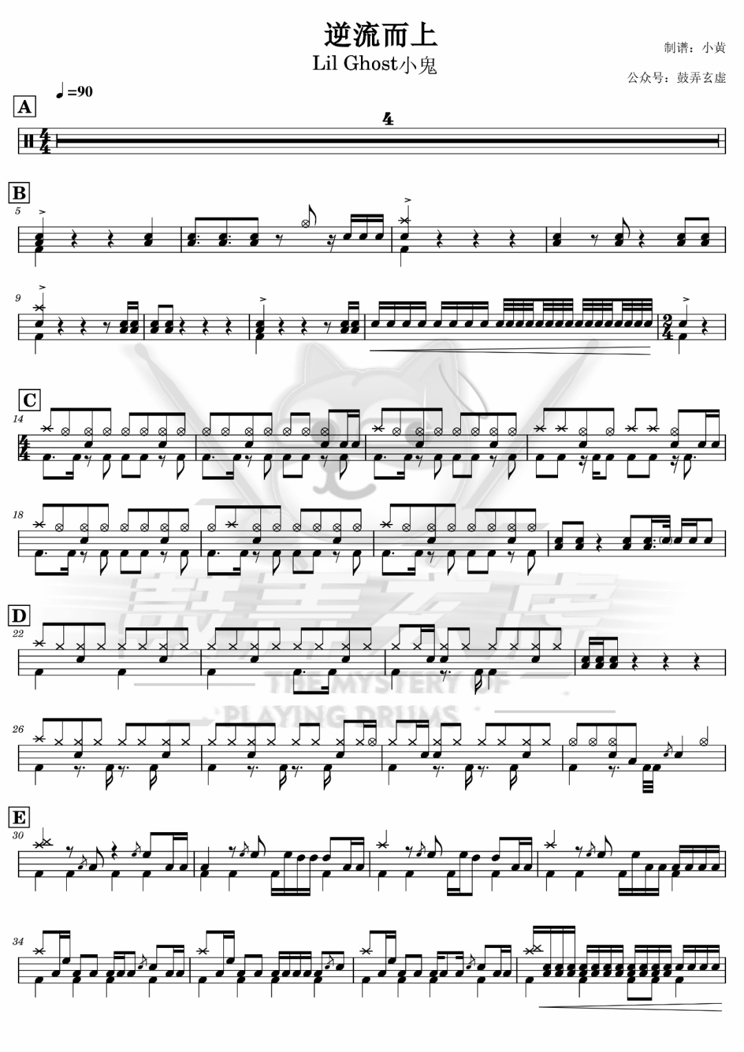 Lil Ghost小鬼《逆流而上》架子鼓谱,鼓弄玄虚编配出品,共有3张高清图谱,由打鼓谱上传并分享。鼓谱:《逆流而上》-Lil Ghost小鬼