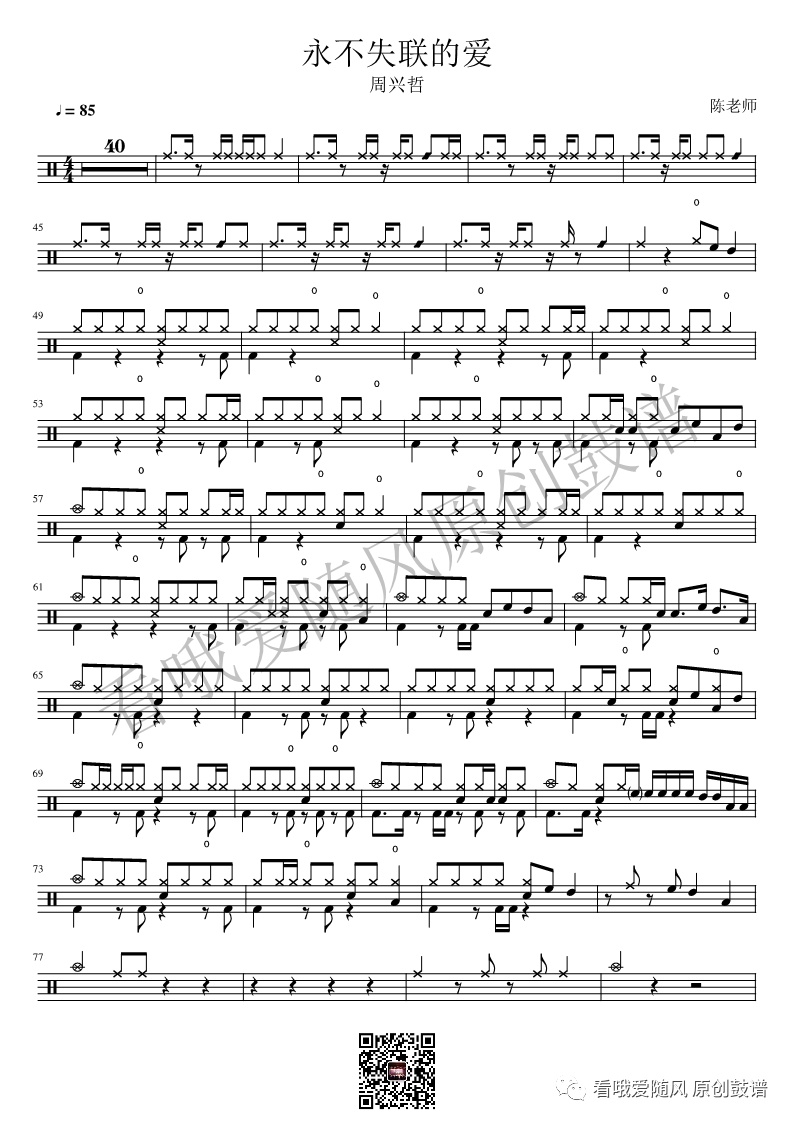 周兴哲《永不失联的爱》架子鼓谱, 看哦爱随风编配出品,共有2张高清图谱,由打鼓谱上传并分享。NO.161 永不失联的爱鼓谱 周兴哲