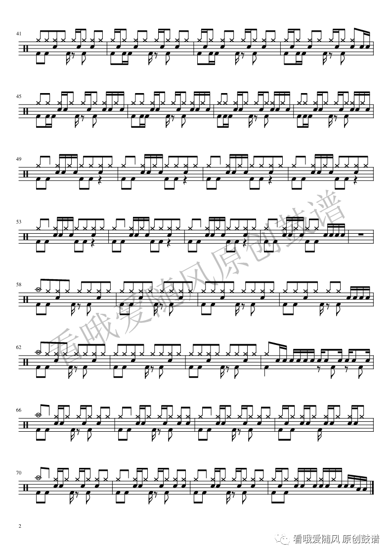 ONEOKROCK《IWasKing》架子鼓谱,看哦爱随风编配出品,共有2张高清图谱,由打鼓谱上传并分享。