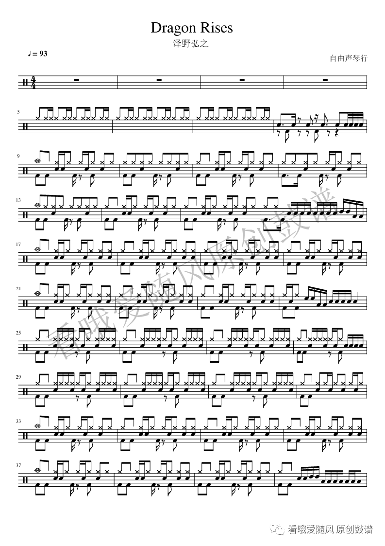 泽野弘之《Dragon Rises》架子鼓谱, 看哦爱随风编配出品,共有2张高清图谱,由打鼓谱上传并分享。NO.15 Dragon Rises 泽野弘之