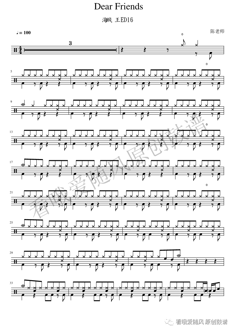 海贼王《Dear Friends》架子鼓谱, 看哦爱随风编配出品,共有3张高清图谱,由打鼓谱上传并分享。NO.12 Dear Friends 【海贼王】