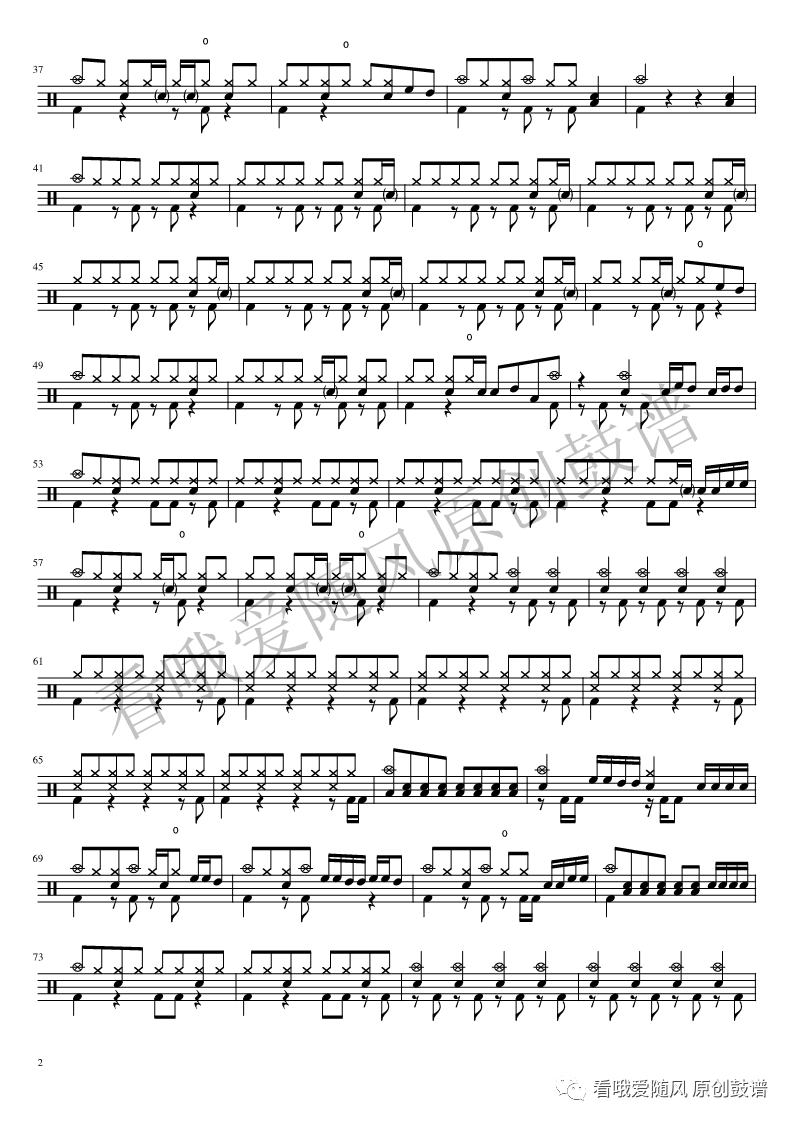 ONEOKROCK《IWasKing》架子鼓谱,看哦爱随风编配出品,共有2张高清图谱,由打鼓谱上传并分享。