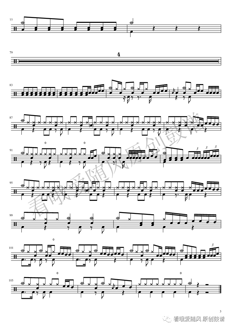 ONEOKROCK《完全感觉Dreamer》架子鼓谱,看哦爱随风编配出品,共有4张高清图谱,由打鼓谱上传并分享。